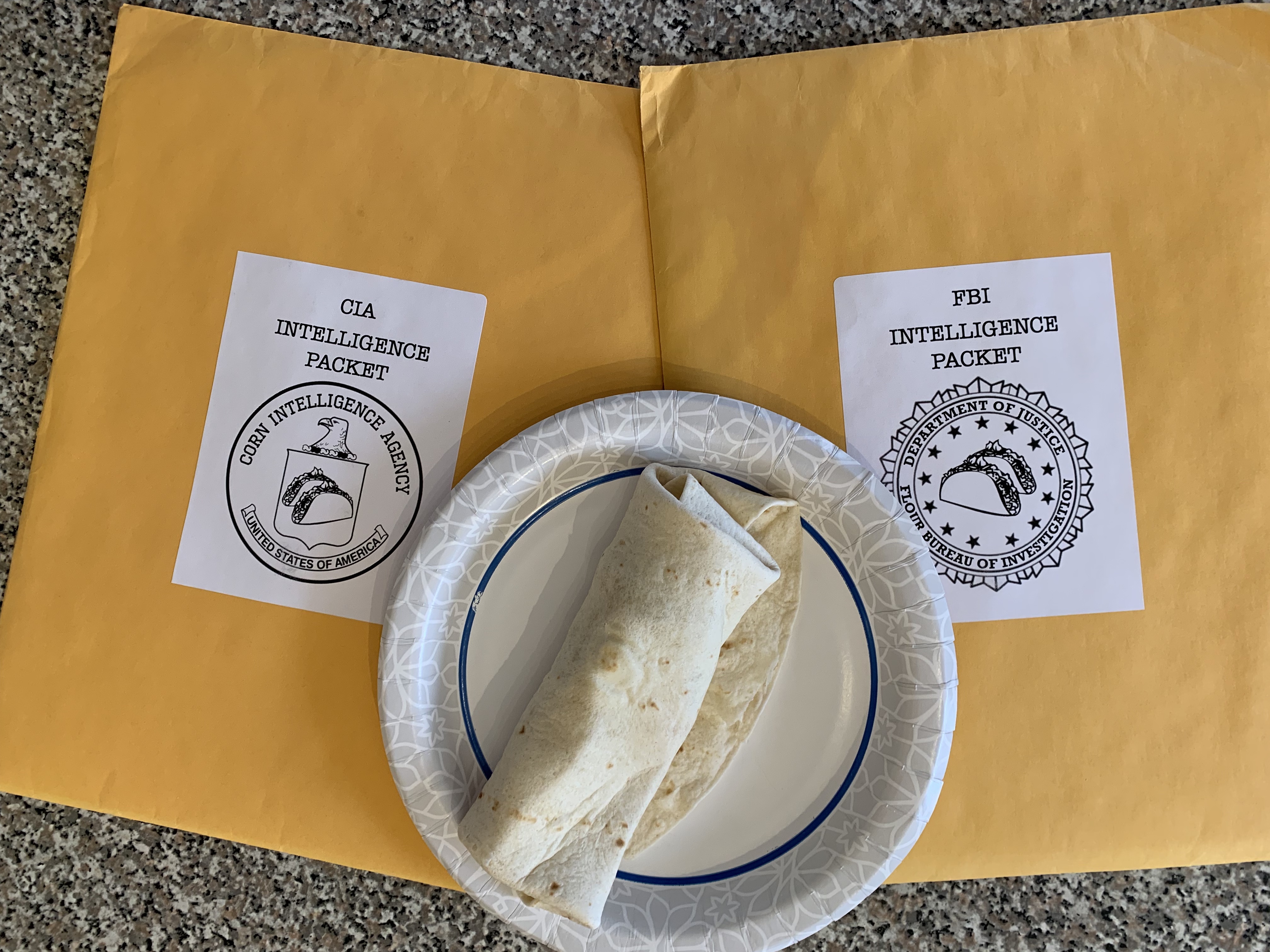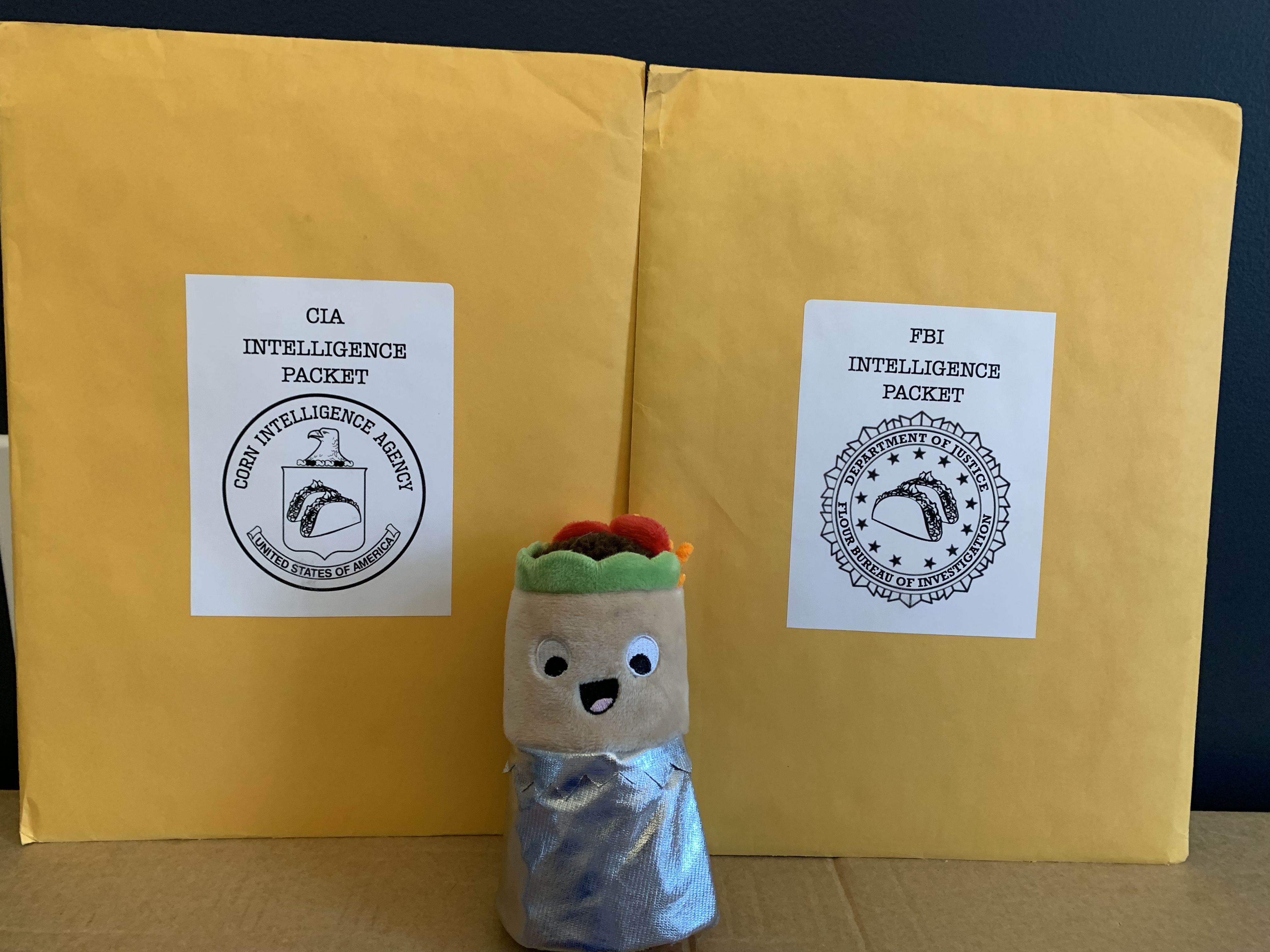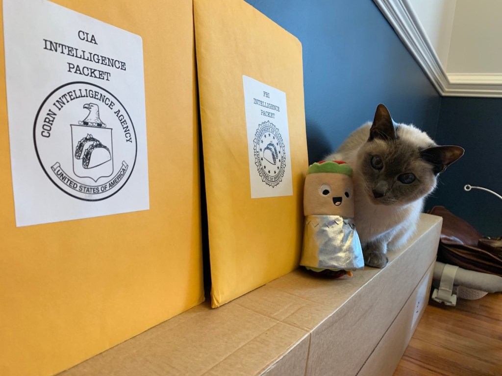 Taco TWOsday by Trapped Puzzle Rooms is a creative series of communication puzzles, designed to be played by two separate players or two teams, who may discuss their separate clues but can never actually show each other their materials. Prior to starting the game, players choose to be either the FBI (Flour Bureau of Investigations) or the CIA (Corn Intelligence Agency). The mission of both agencies is to stop the thief known as the Guaca-mole and doing that requires both agencies to -gasp- collaborate! Note: You do need both team packets to play the game. While there is an option to purchase individual FBI or CIA packets on the website if you are splitting the cost amongst a group or are playing remotely and need the packets to go to different addresses, you must still be sure that both packets have been purchased.