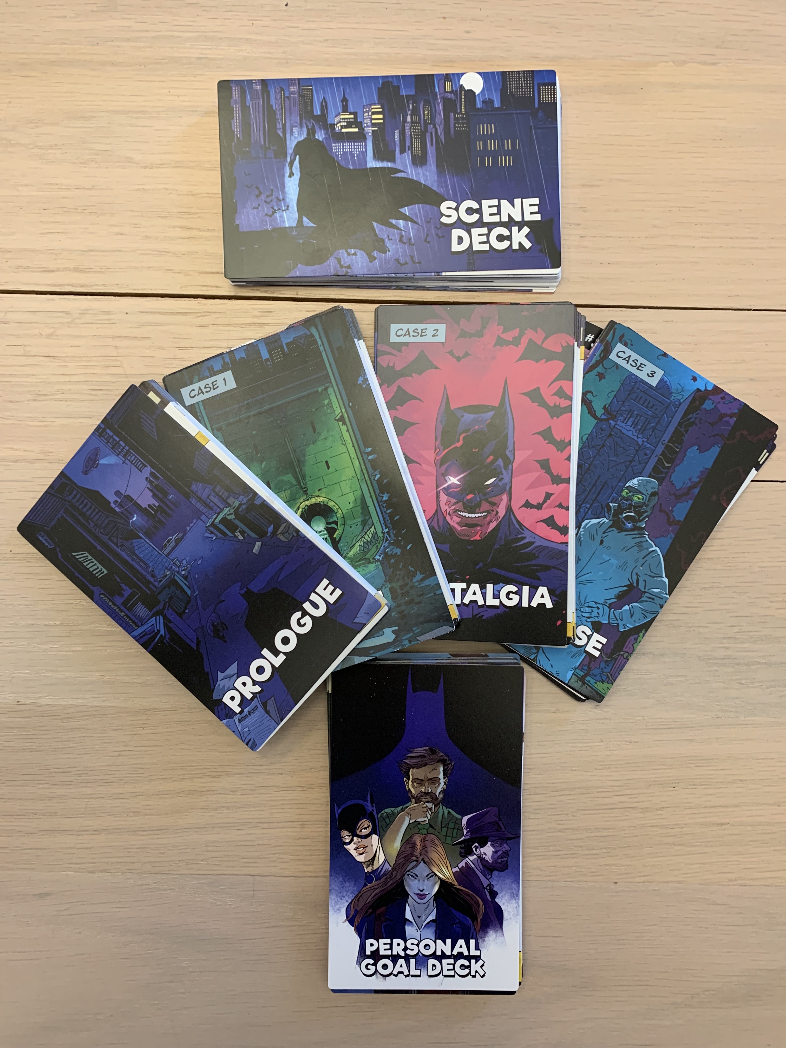 We’ve previously played and enjoyed both Detective: A Modern Crime Board Game and Detective: A Modern Crime Board Game: Season One, so we were very excited to play a Batman themed take on those games. We are happy to report that Portal has delivered a solid venture into the dark underbelly of Gotham and the world of Batman.