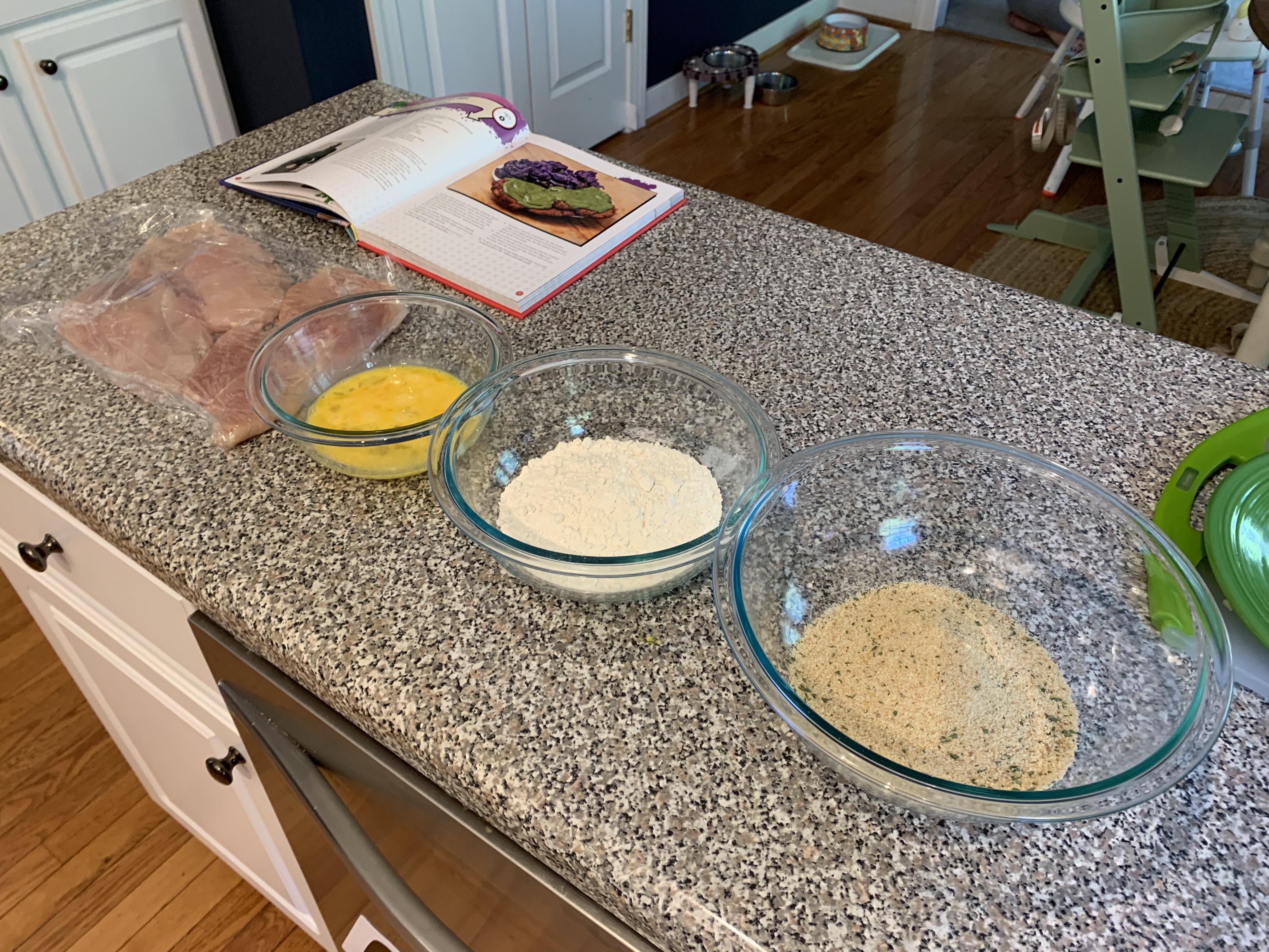 With that issue solved, I went back to work, glad that the ingredient issue happened before I got too deep into the process. Moving forward, the recipe came together pretty easily. I’ve breaded and cooked chicken in oils before, so that came simply enough. It felt strange smashing potatoes between plates, but it got the job done while giving me a small taste of “Hulk Smash” life.