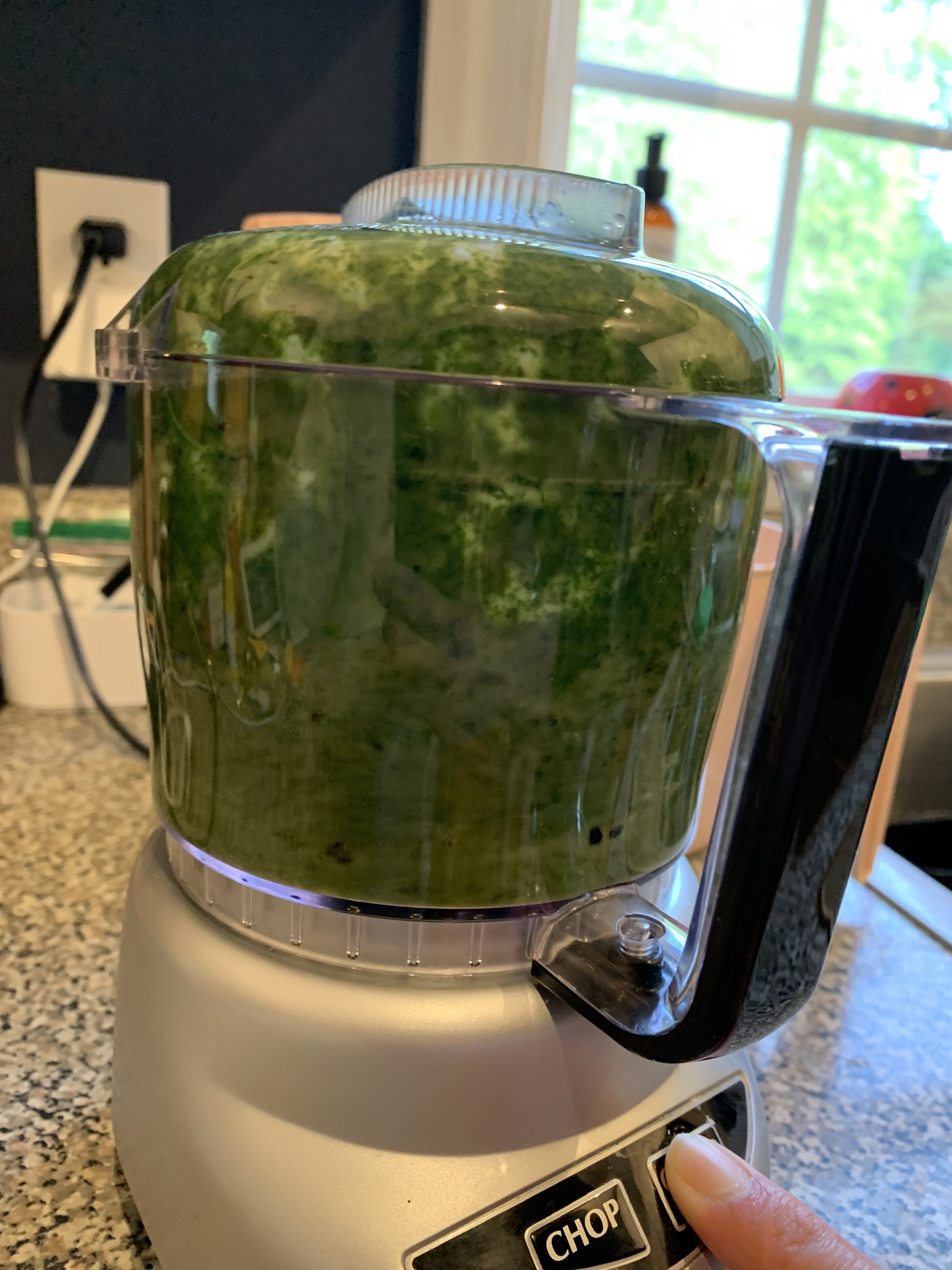 The Green sauce was the most unique part of the recipe for me. I purposefully cut out the onion because yuk, but stayed true to the recipe from there. Things smelled great and thankfully everything fit into our food processor which I used to blend the sauce into a nice liquid. This seemed almost smoothie like. My sauce was clearly darker than the picture from the book, but whatever. Green is green.