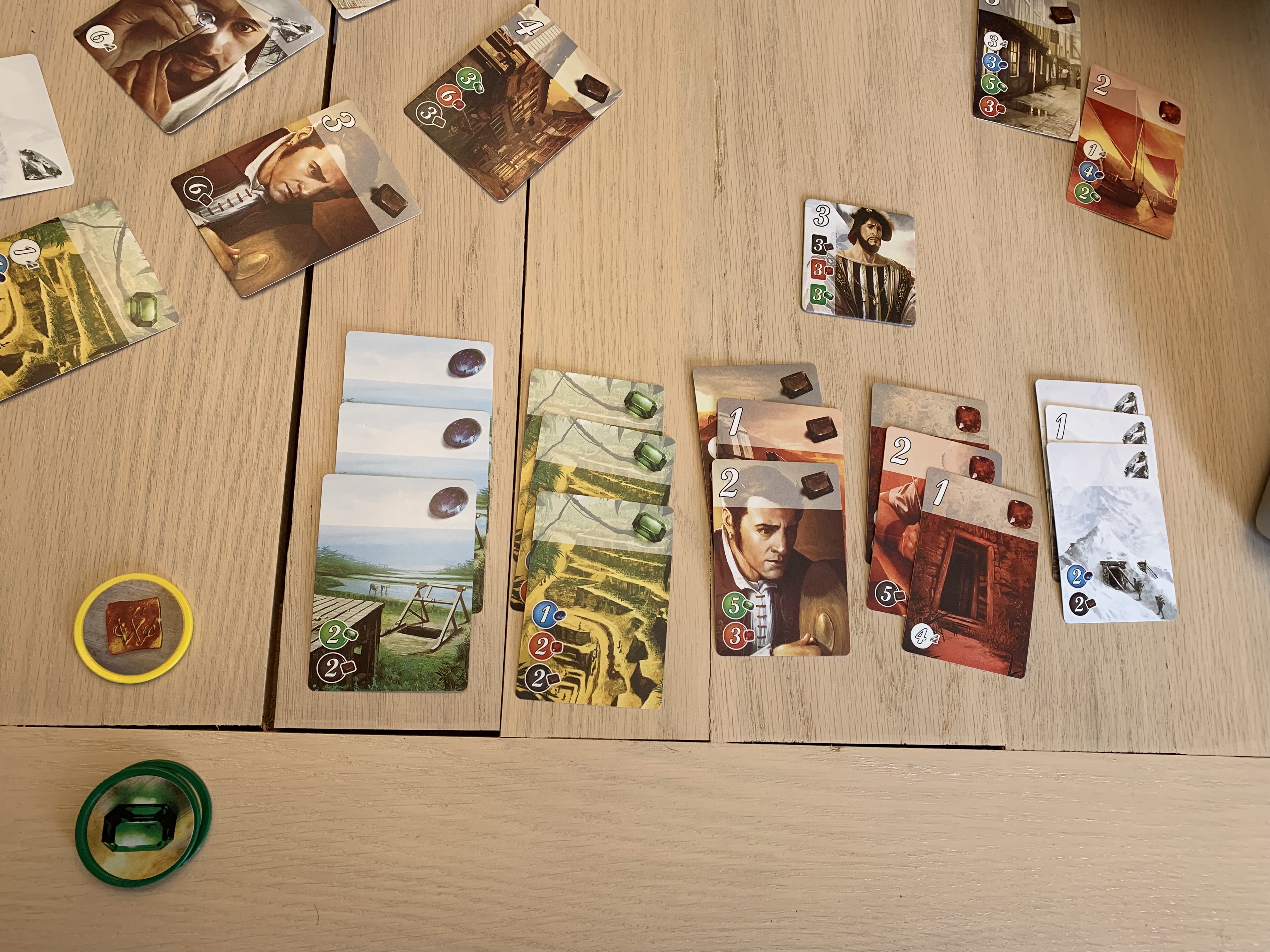 If a player has enough specific gem resources rewarded by development cards they can also claim nobility tiles which grant even more prestige points. The game is all about players working their way up the jewelry ladder towards greater rewards. They must carefully balance gathering resources, creating strong buy power, and snatching up development cards. It’s a race to fifteen prestige points.