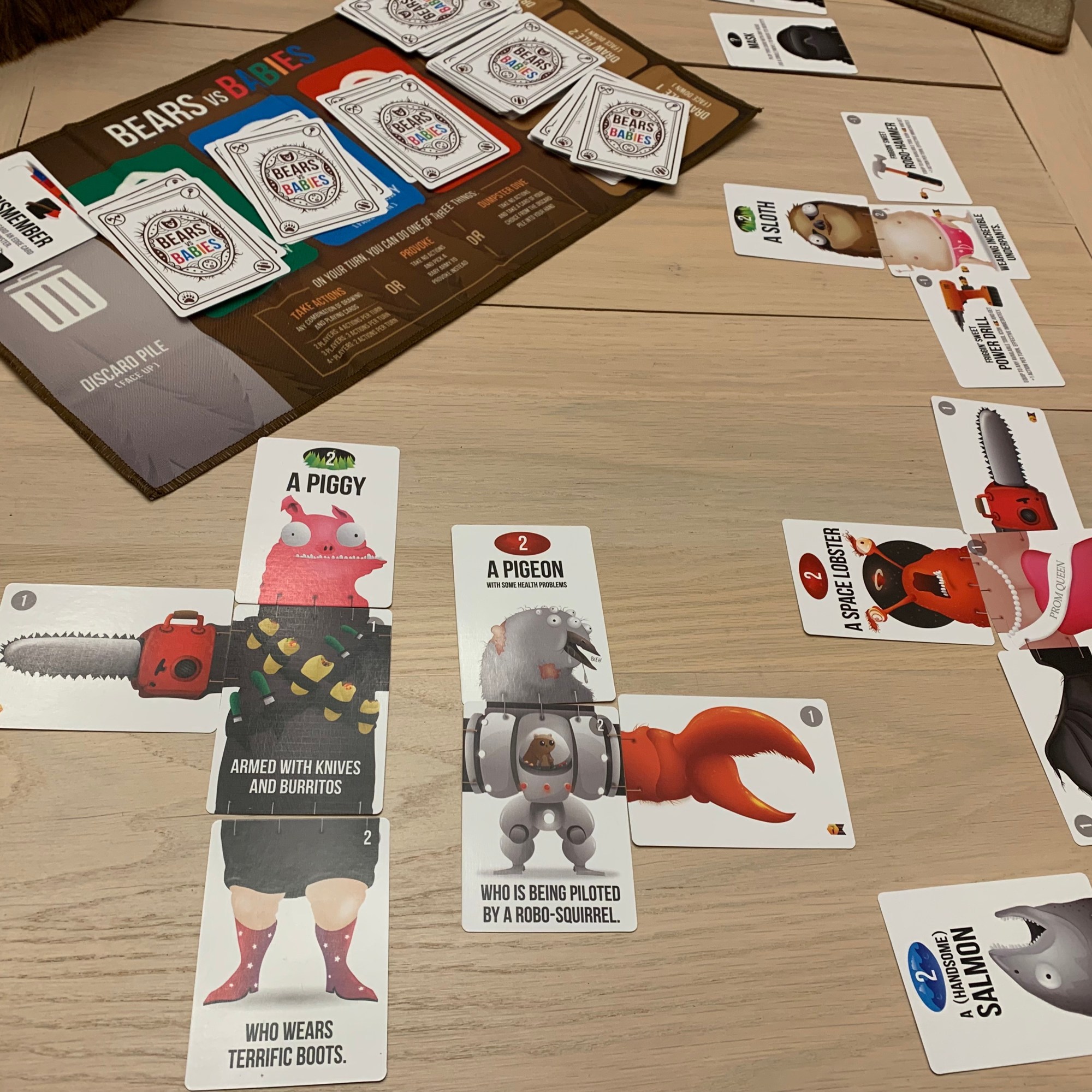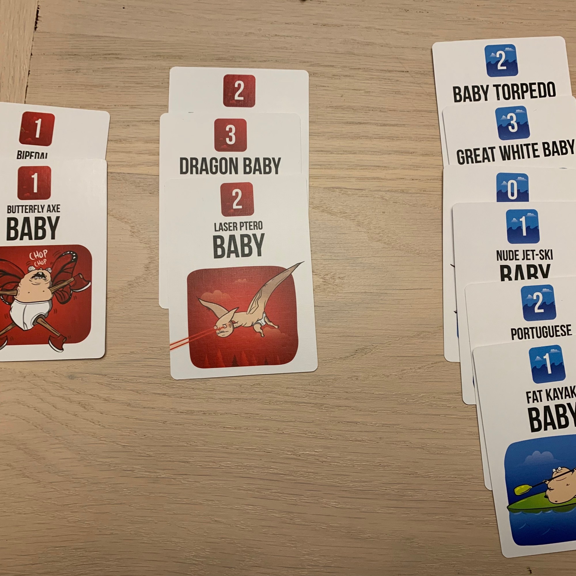 During their turn, a player has a few options. They can take up to four actions (playing and drawing cards) OR provoke a type of baby to start a fight OR draw one card from the discard pile. This process of building and fighting will continue until the draw decks run out. Then, players will each get one more turn before calling it a game and counting their points.