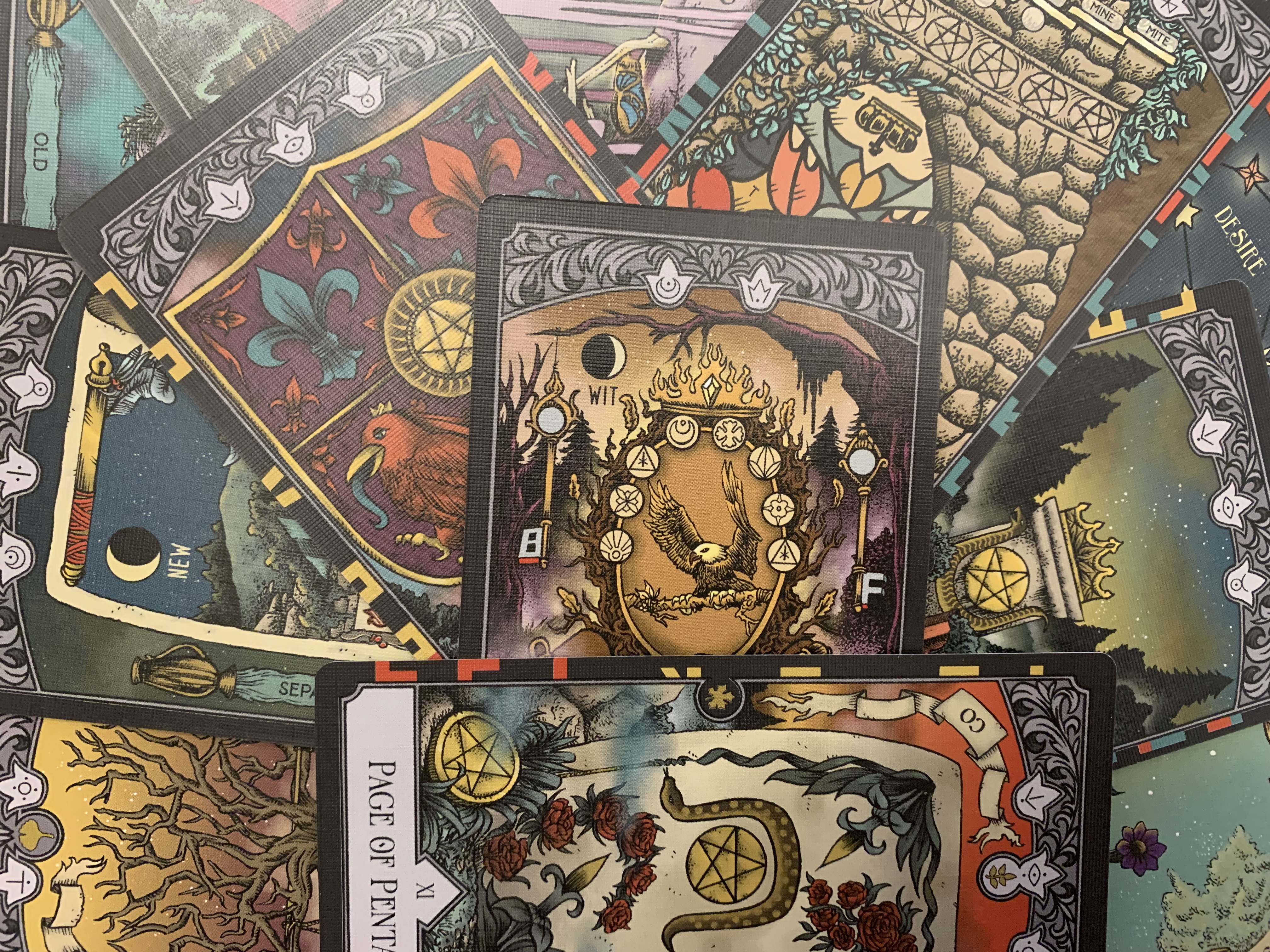 To attempt a puzzle, players must first choose one of the available major arcana cards. Then, they should pull all the minor arcana cards that have a matching symbol. This can be anywhere from no cards to fourteen cards (don’t worry, the major arcana cards tell you how many extra cards you’ll need). Once the proper resources are pulled, a wisdom entry should be read to provide additional context and clues. Next, it’s time to solve the puzzles for one or more keywords. Each keyword will lead to an additional passage that will reveal more of the story. Along the way, players will gather more knowledge and possibly a few more tools to help them on their quest.