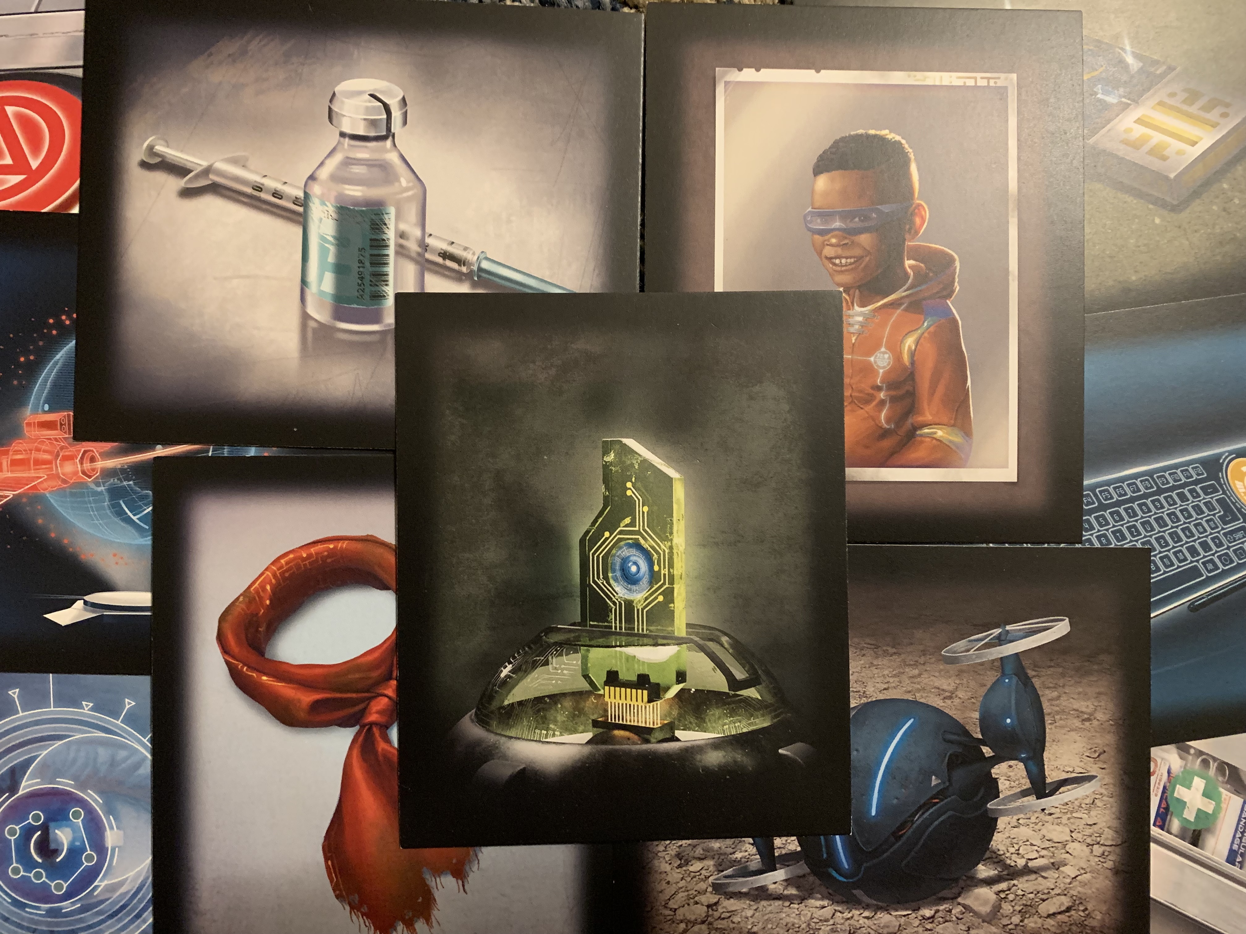 This game requires an app to listen to the narrative and clues. While the provided cards contain pictures, the gameplay is audio based with answers submitted through the app.