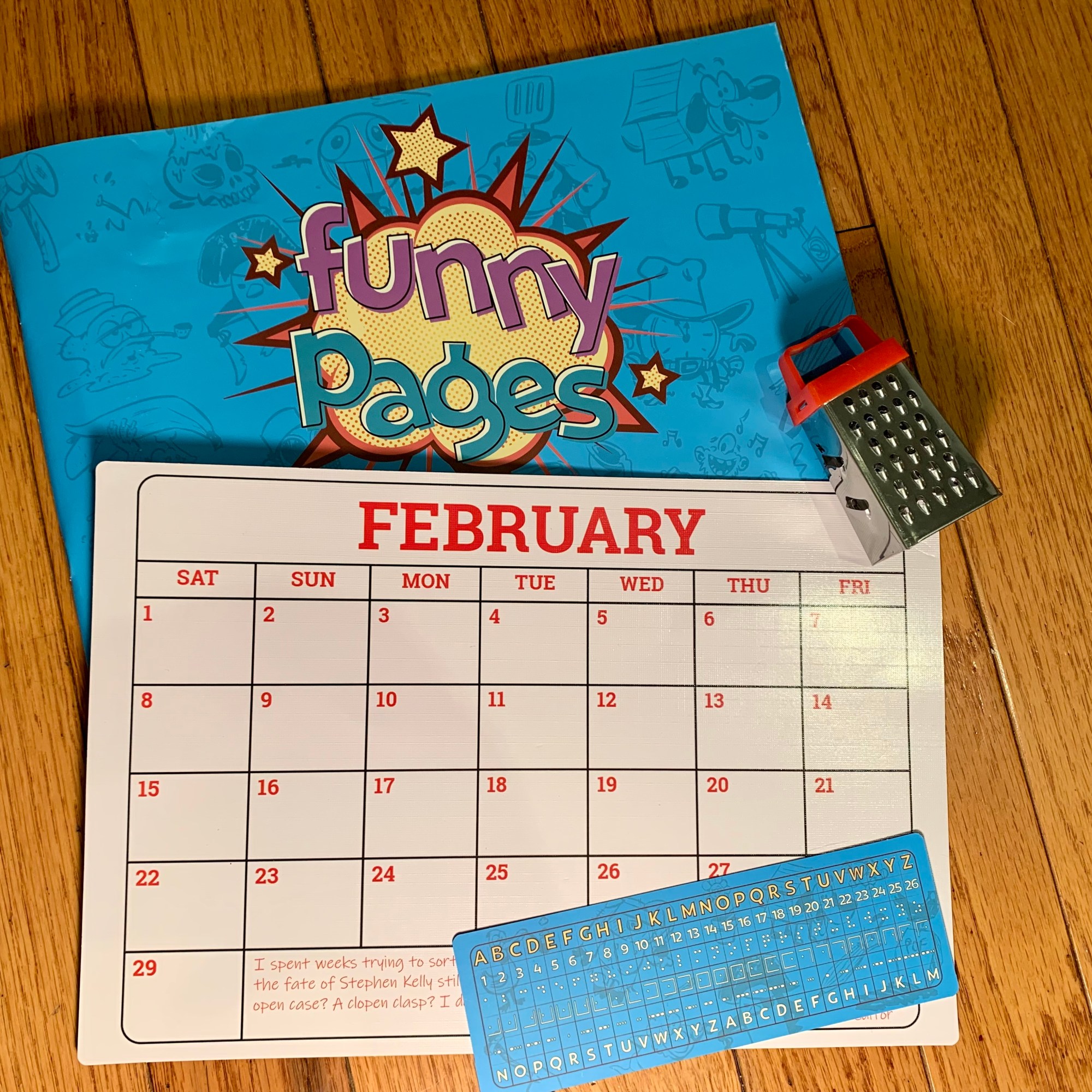 After receiving Funny Pages, we couldn’t wait to dive into the plethora of comics and puzzles included. There was also the mystery of the mini cheese grater that needed to be answered.