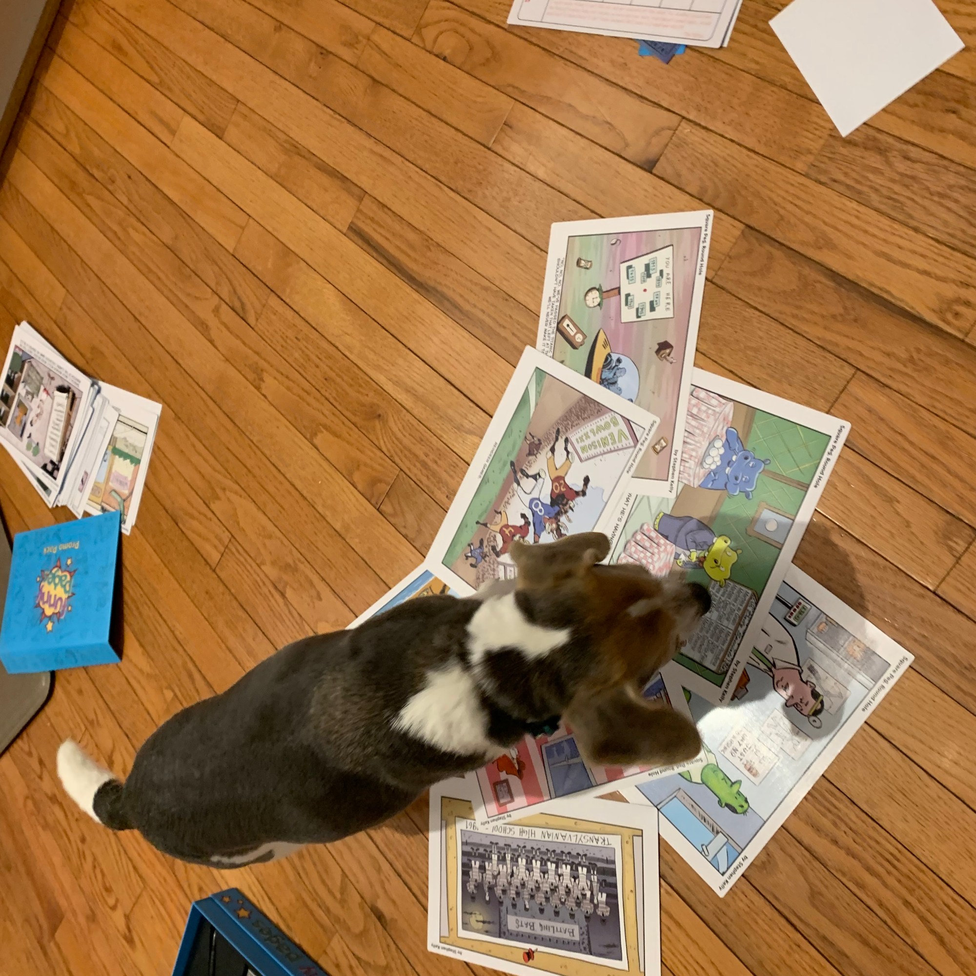 Funny Pages is marketed for 1-10 players, ages 14+. It advertises itself as taking 5+ hours. As a duo, we completed the game at about the five hour mark.