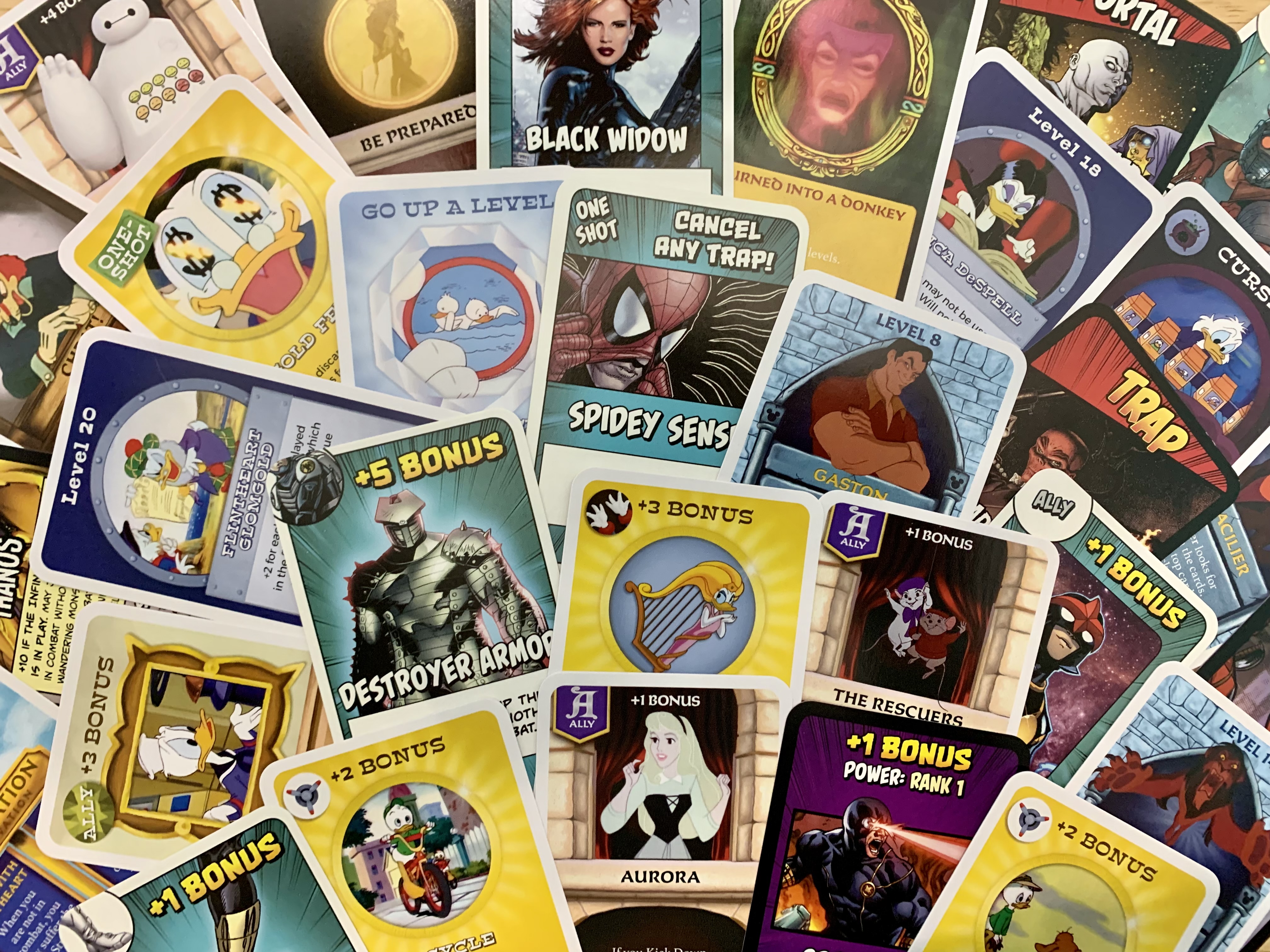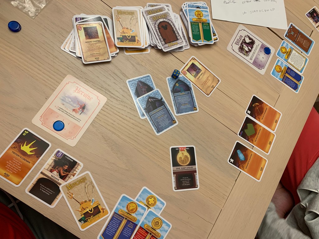 This game stayed a lot more even throughout. Both players saw their fair share of victories and defeats to monsters. They also equipped some nice gear while encountering way more potential allies than they could possibly equip. The biggest highlight of this game was how quickly both players started doing everything they could to prevent even the smallest moment of success for the other. They enhanced monsters, threw in extra monsters, made fights disappear, threw curses around, and stole levels. Despite the family-friendly magic of Disney, this game got cut throat.