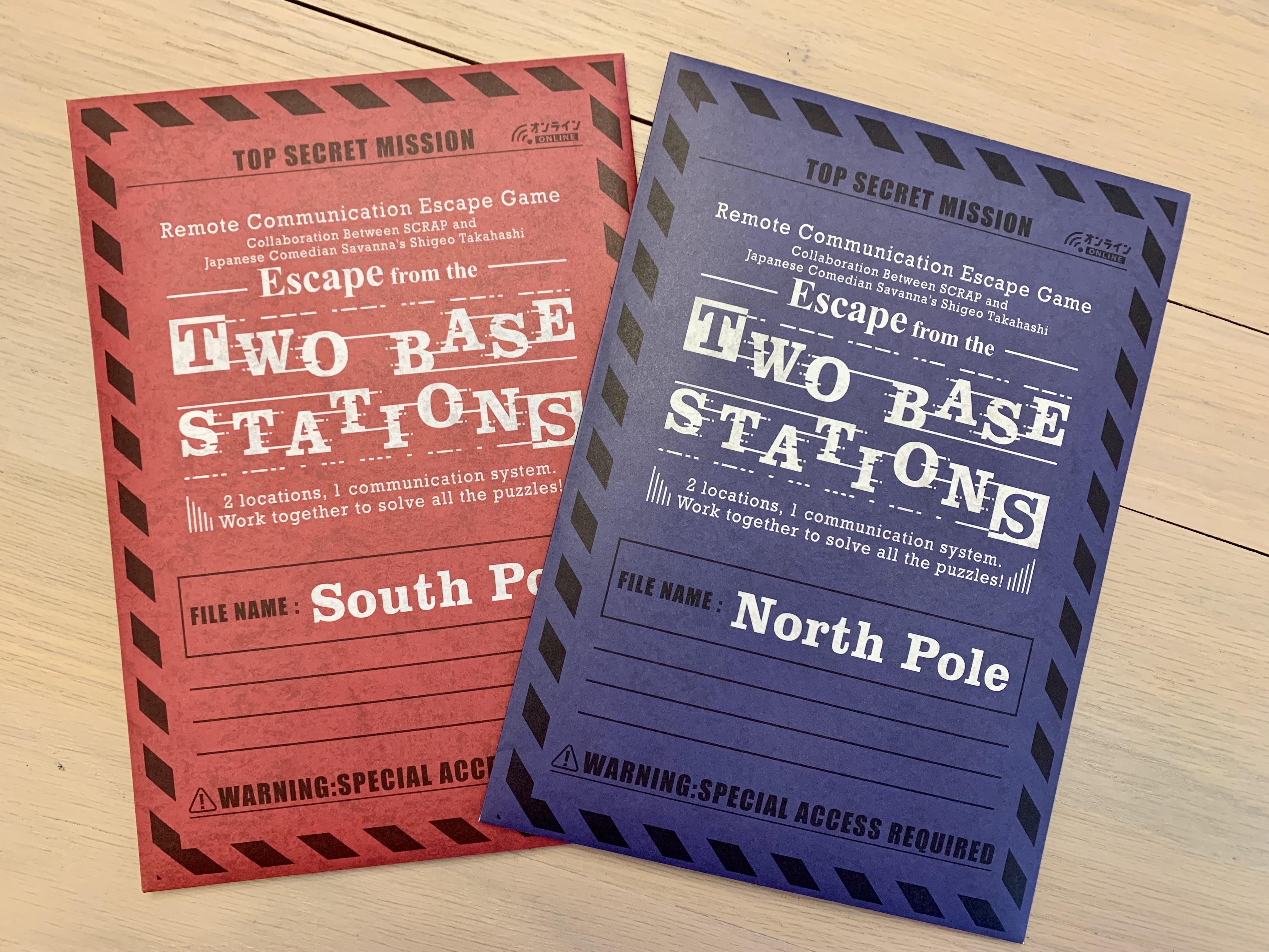 The game comes with two envelopes, one for each player. Inside they will find four smaller envelopes that contain pieces of information that will aid in escaping the two bases. Players will need to share and trade info to figure out how to proceed on their adventure.