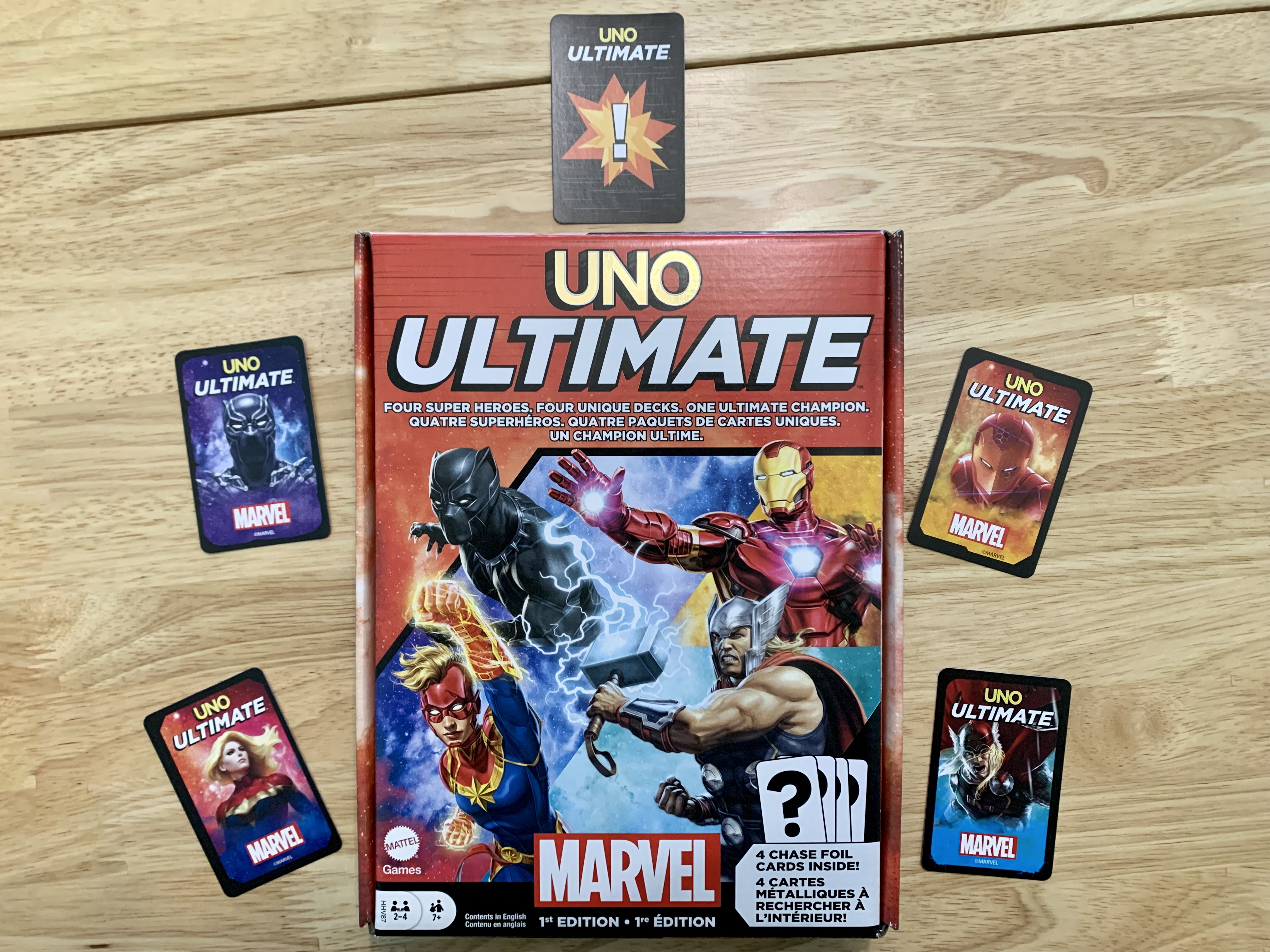 Ultimate Uno is a Marvel themed Uno game that adds new rules and dynamics to shake up the traditional game with new goals and paths to victory.