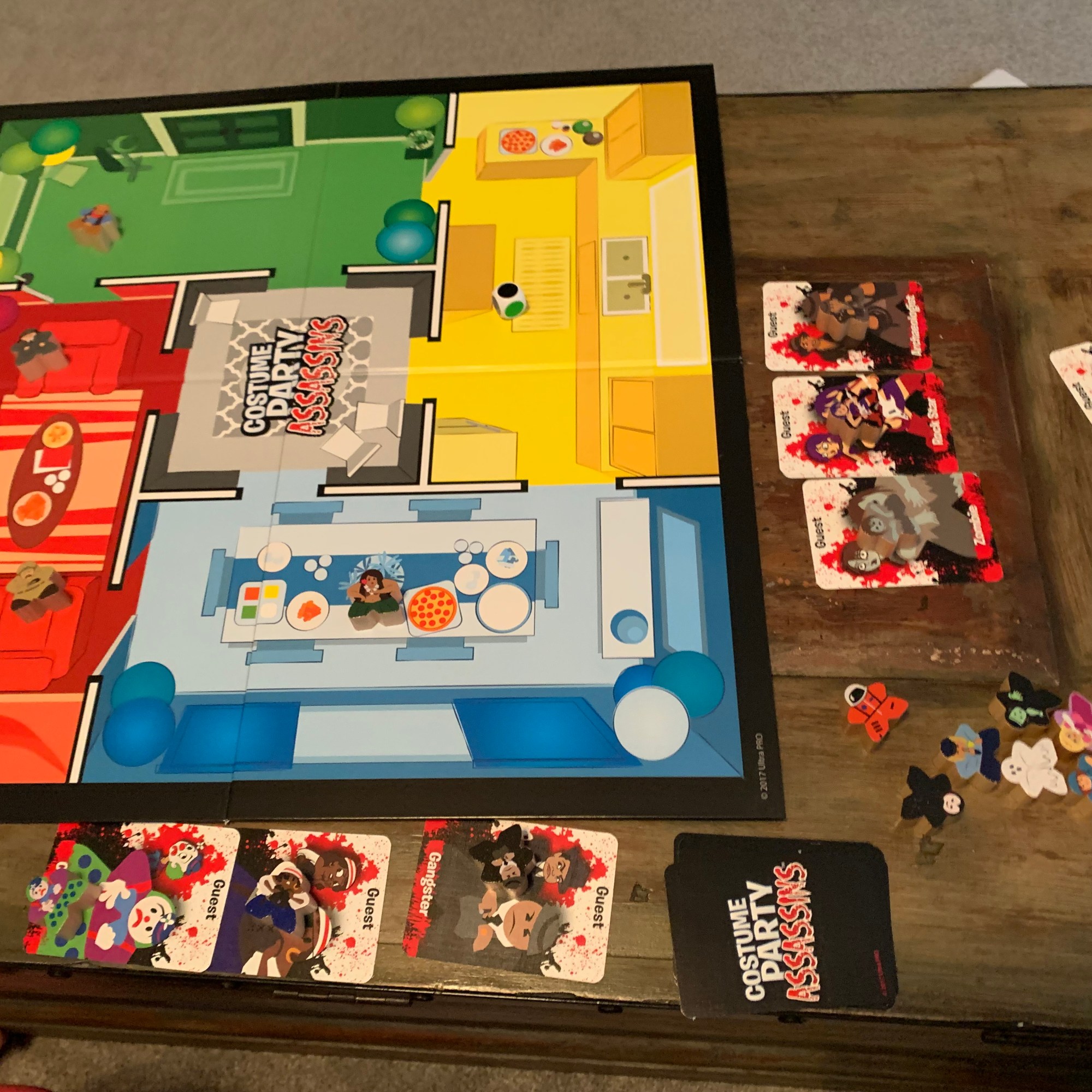 Originally released as Costume Party Assassins, but now selling under the name Costume Party Detective, this is a simple game of deceit and murder. Twenty costumed meeples arrive at party than spans the five rooms of a house. One by one, the partygoers will dwindle away until only one survives.