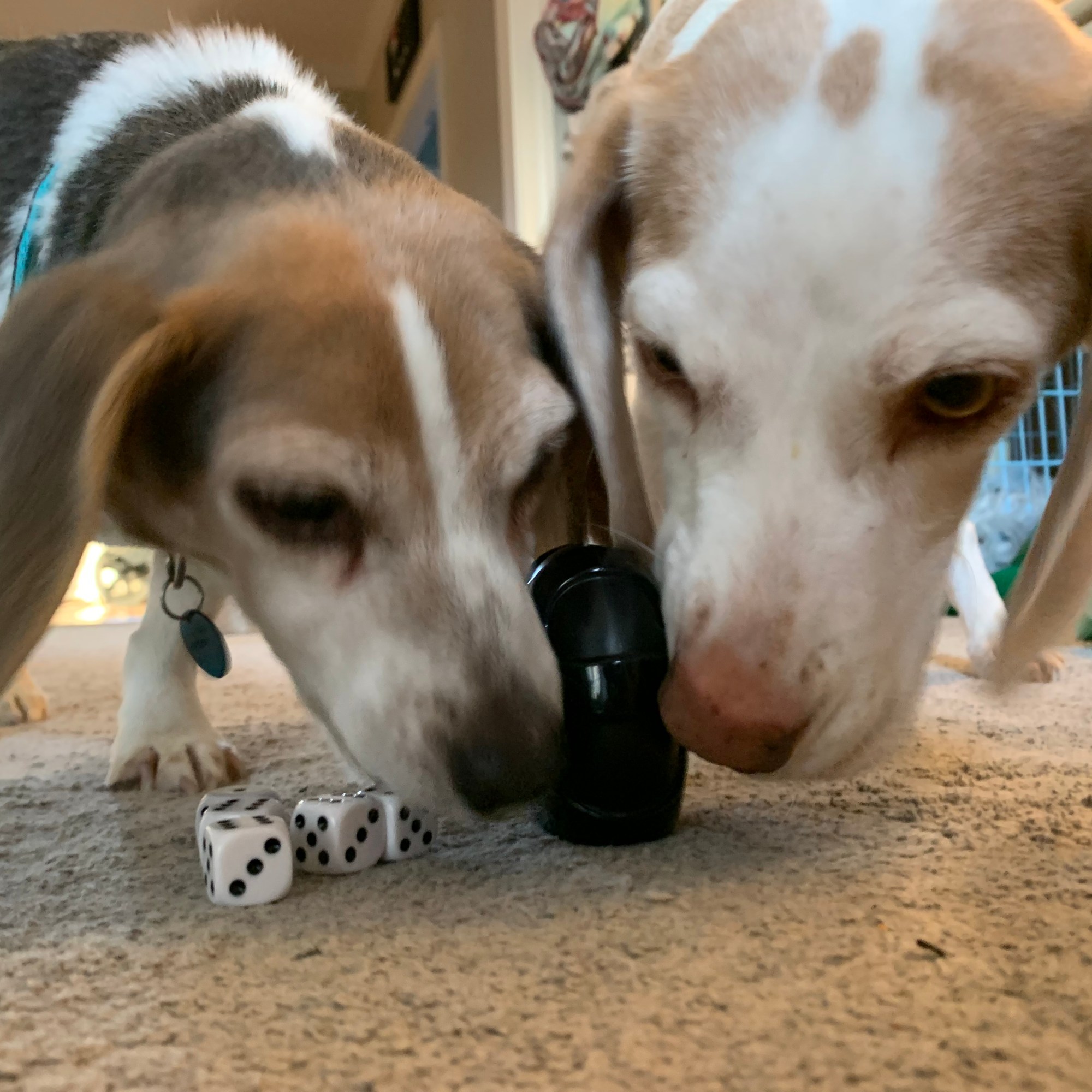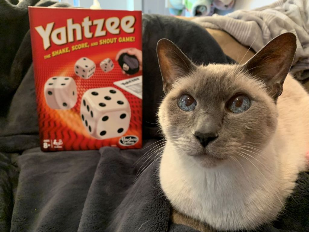 Chaos started this game and immediately got his large straight. This felt like a good sign. Then, Confetti’s first roll resulted in a yahtzee, and that seemed like an even better sign for her.