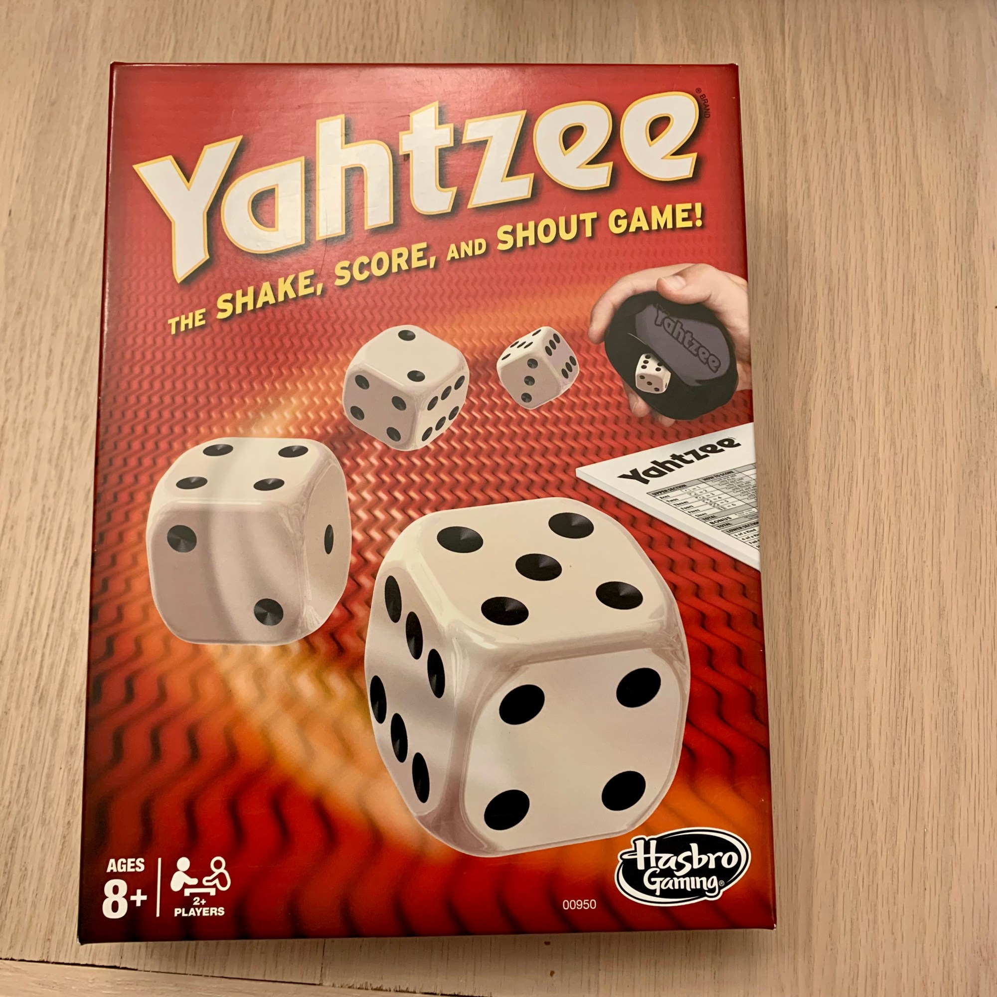 Yahtzee is a dice-rolling and scoring game. Players will work to strategically maximize their points each round in order to seize victory after thirteen rounds.