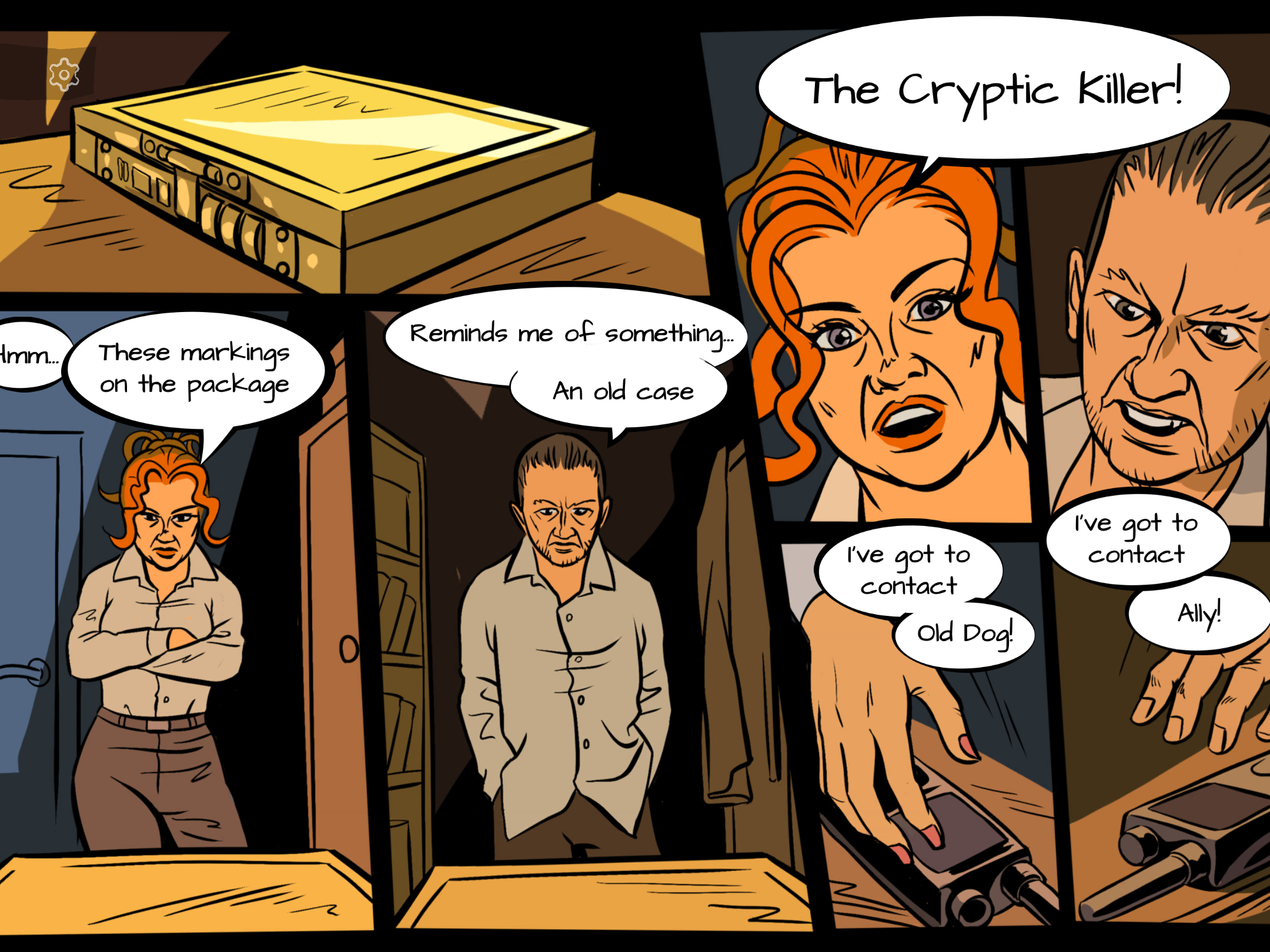 The narrative felt in line with the rest of the series, setting a mildly dark and serious tone as the detectives hunt down a serial killer. The story is depicted in a comic panels-esque way with dialogue narrated aloud. The visuals, along with comic captions/dialogue bubbles allow for some fun storytelling. The story mostly takes place before and after each section of the game, guiding players to their next set of puzzles.