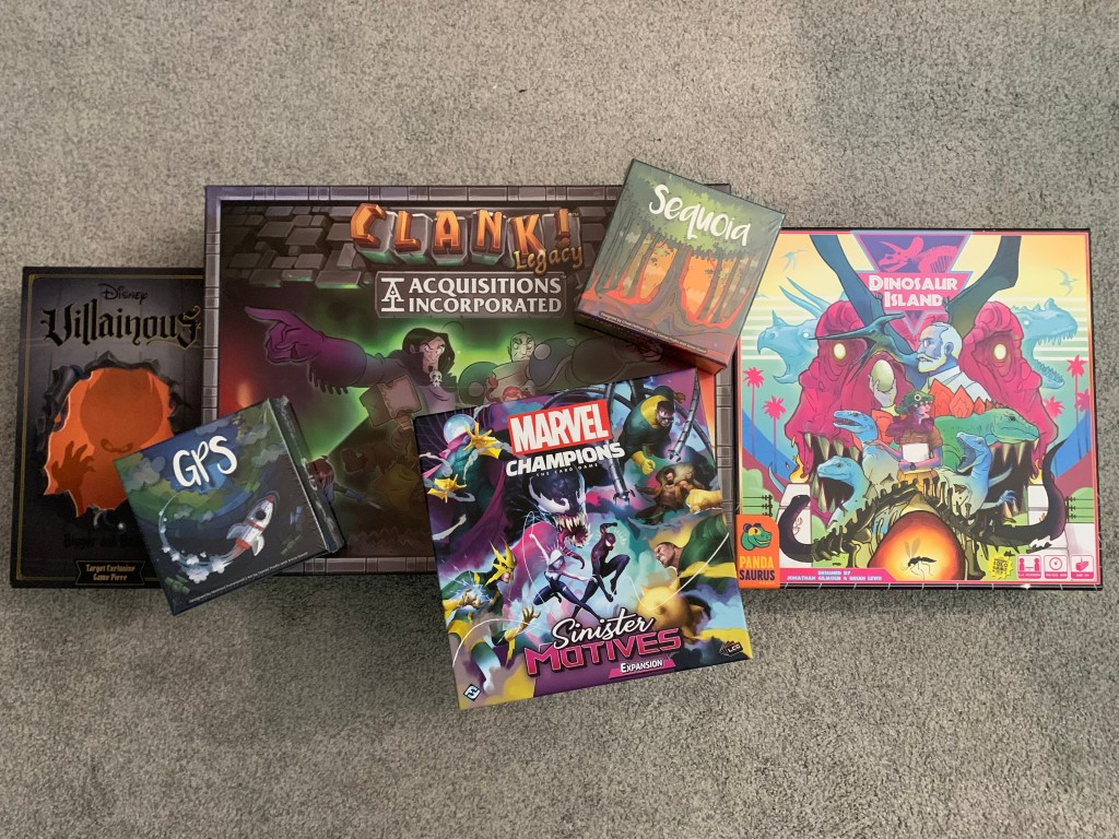 With our choices narrowed, we looked at our options. We had games that we enjoyed but hadn’t been able to break out expansions for Marvel Champions, Robinson Crusoe, and Villainous. We had games that looked good but the opportunity hadn’t been made yet, Dinosaur Island, Clank! Acquisitions Incorporated, and others. Then, there were the games we’ve just happened to acquire over time that simply haven’t happened; games such as GPS and Sequoia. Of course, there we had newer purchases that we really wanted to hit the table (like The Shivers), but their newness felt like it disqualified them from this particular event. Scanning through our collection, several games stood out as “hey, remember me?” games (examples: and Then, We Held Hands, Bring Your Own Book, and Hot Seat).