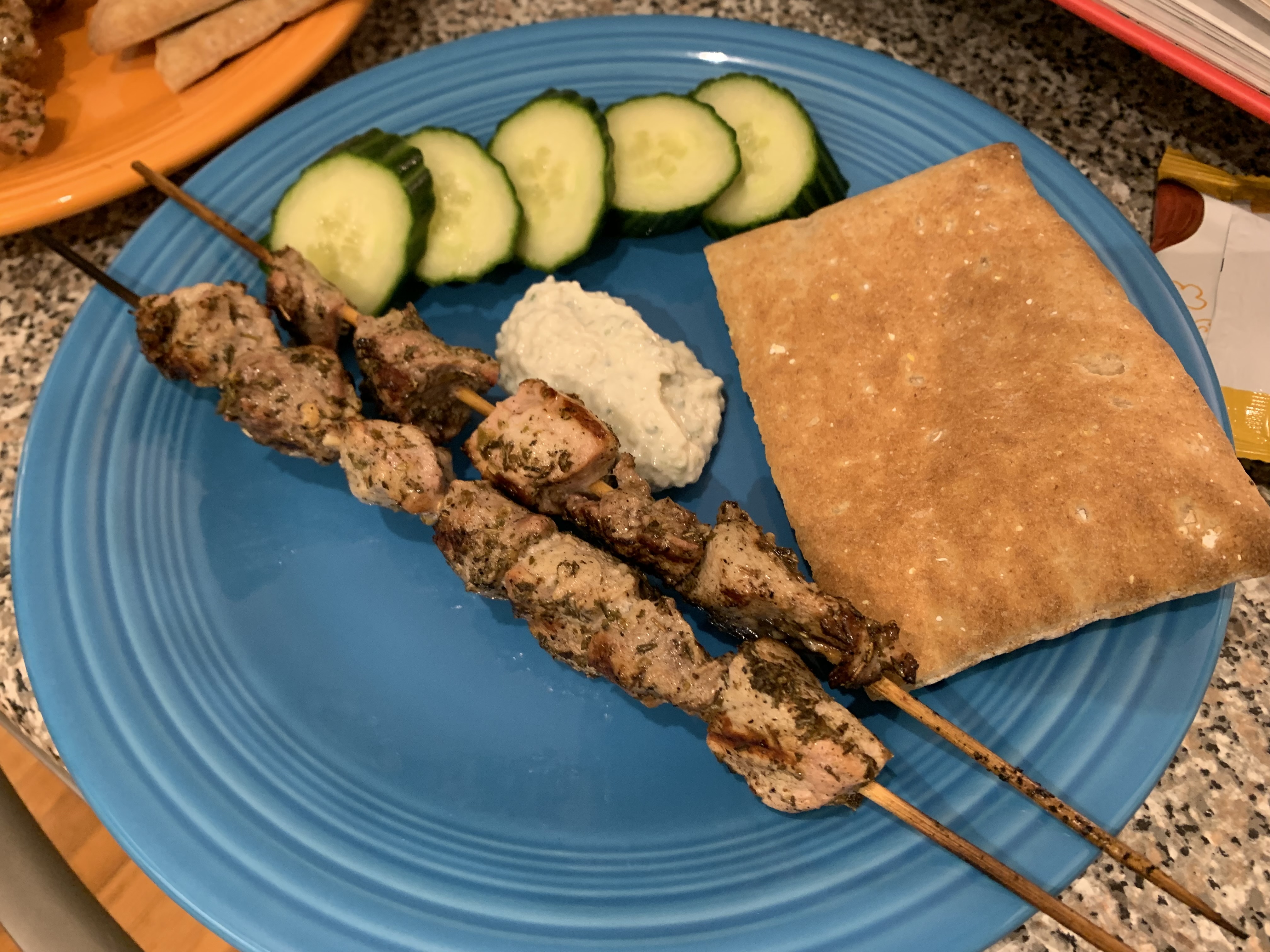 I plated the meat with cucumbers and tzatziki, and my family was ready to eat.
