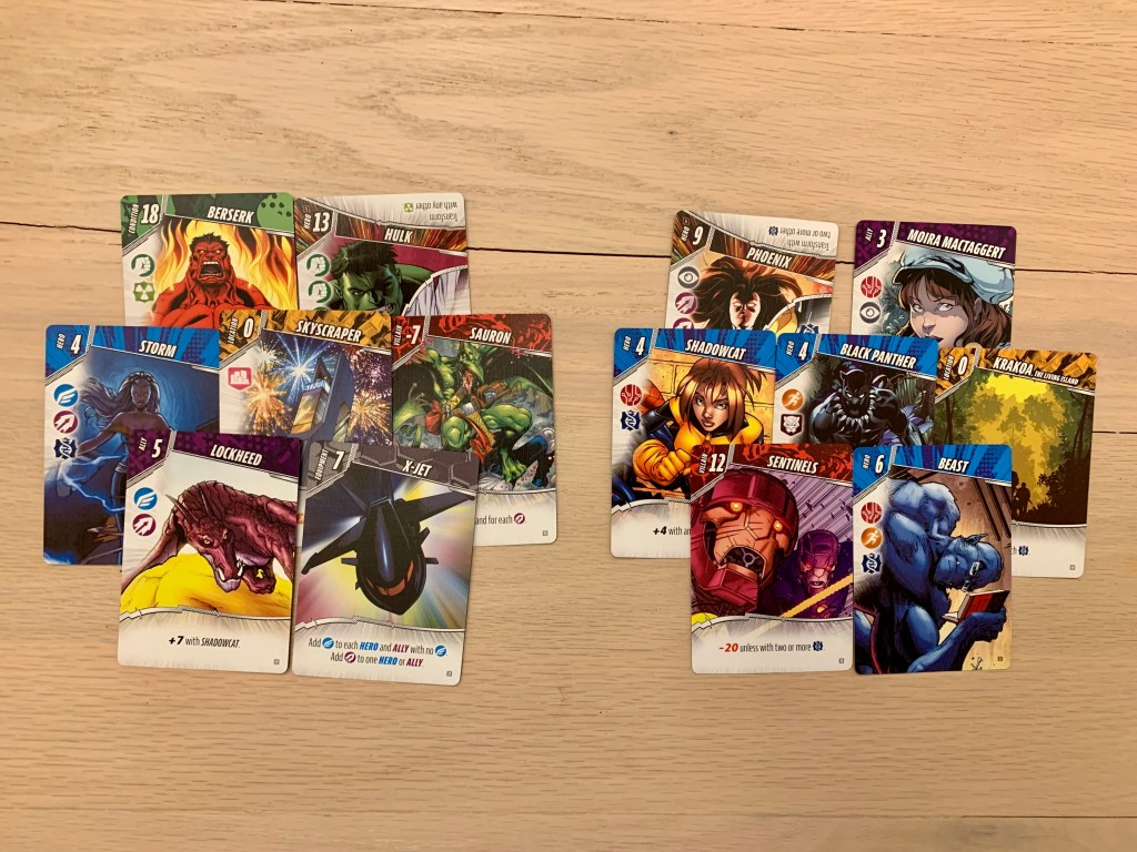 Marvel: Remix is based on the Fantasy Realms game system. Players strive to create a seven card hand of cards which will score them the most points. This will take careful consideration of each card’s abilities and values.
