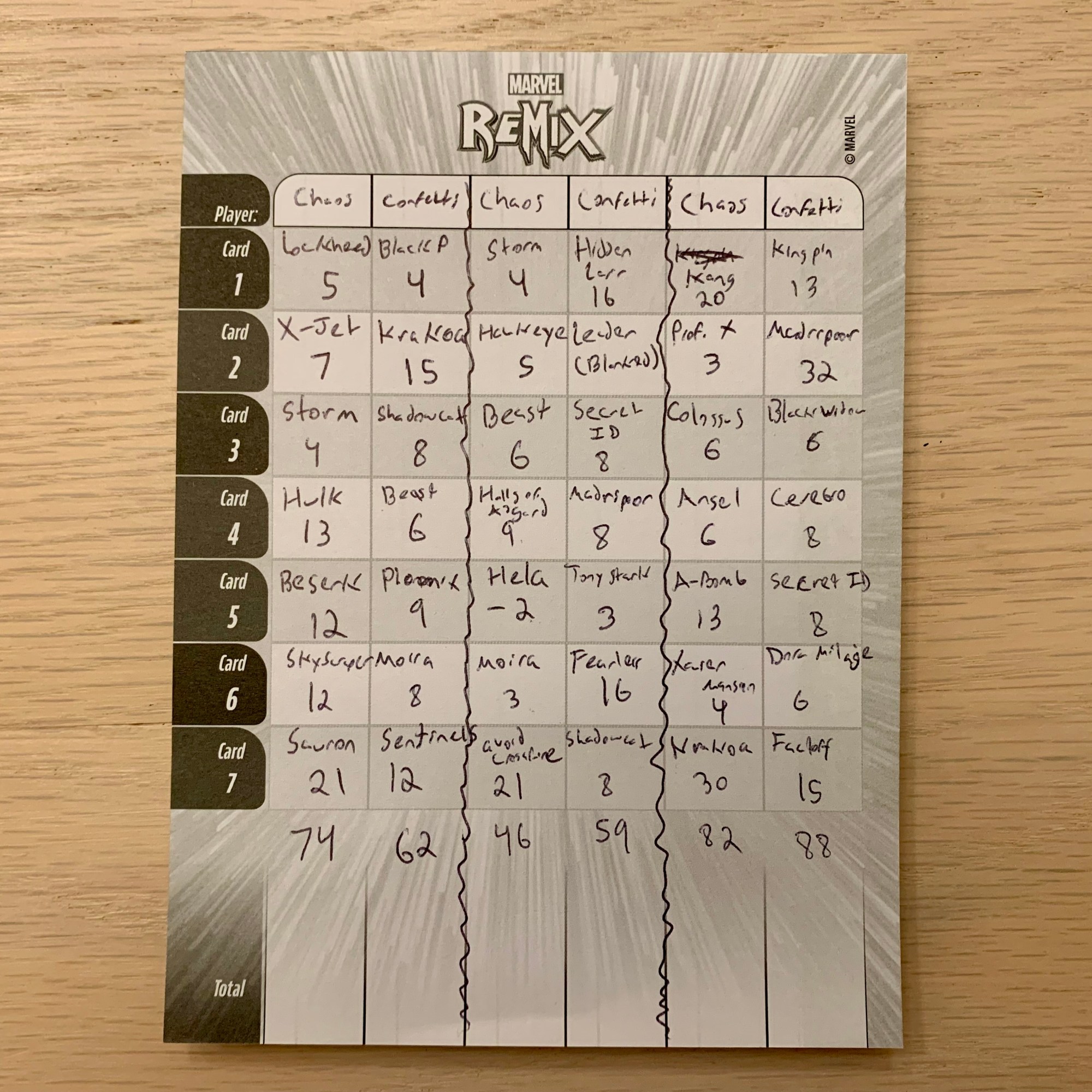 This was both Chaos and Confetti’s first time playing Marvel: Remix, so they both had to go in a bit blind to what made a strong hand. Obviously they could sense synergy amongst cards, but they were both unsure what actually counted as a large point value within the context of this game.