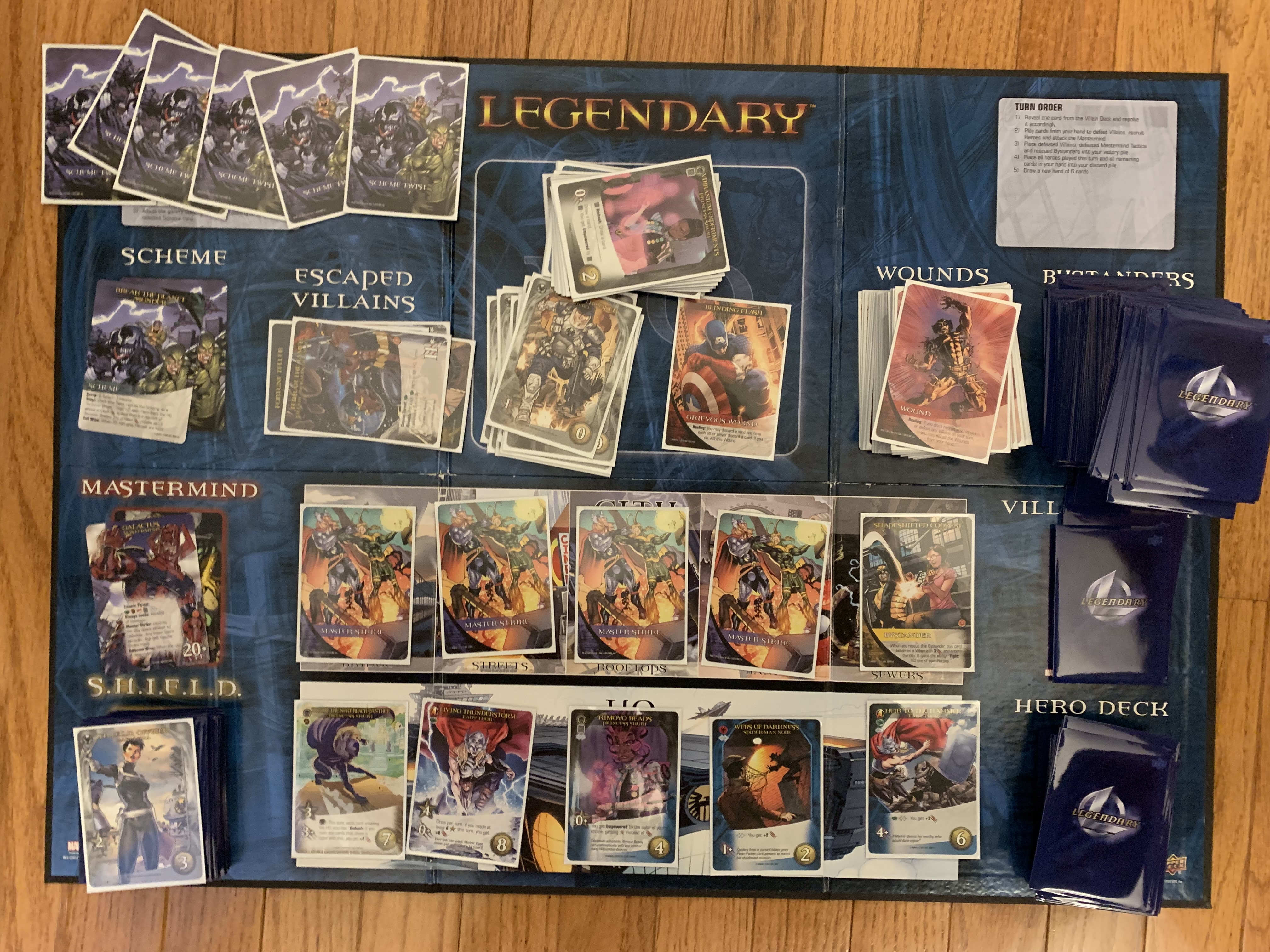 This week we will be playing Legendary: A Marvel Deck Building Game. The basic concept of the game is that evil forces are trying to enact a terrible scheme and it is up to the players to assemble and coordinate a team of heroes to save the day.