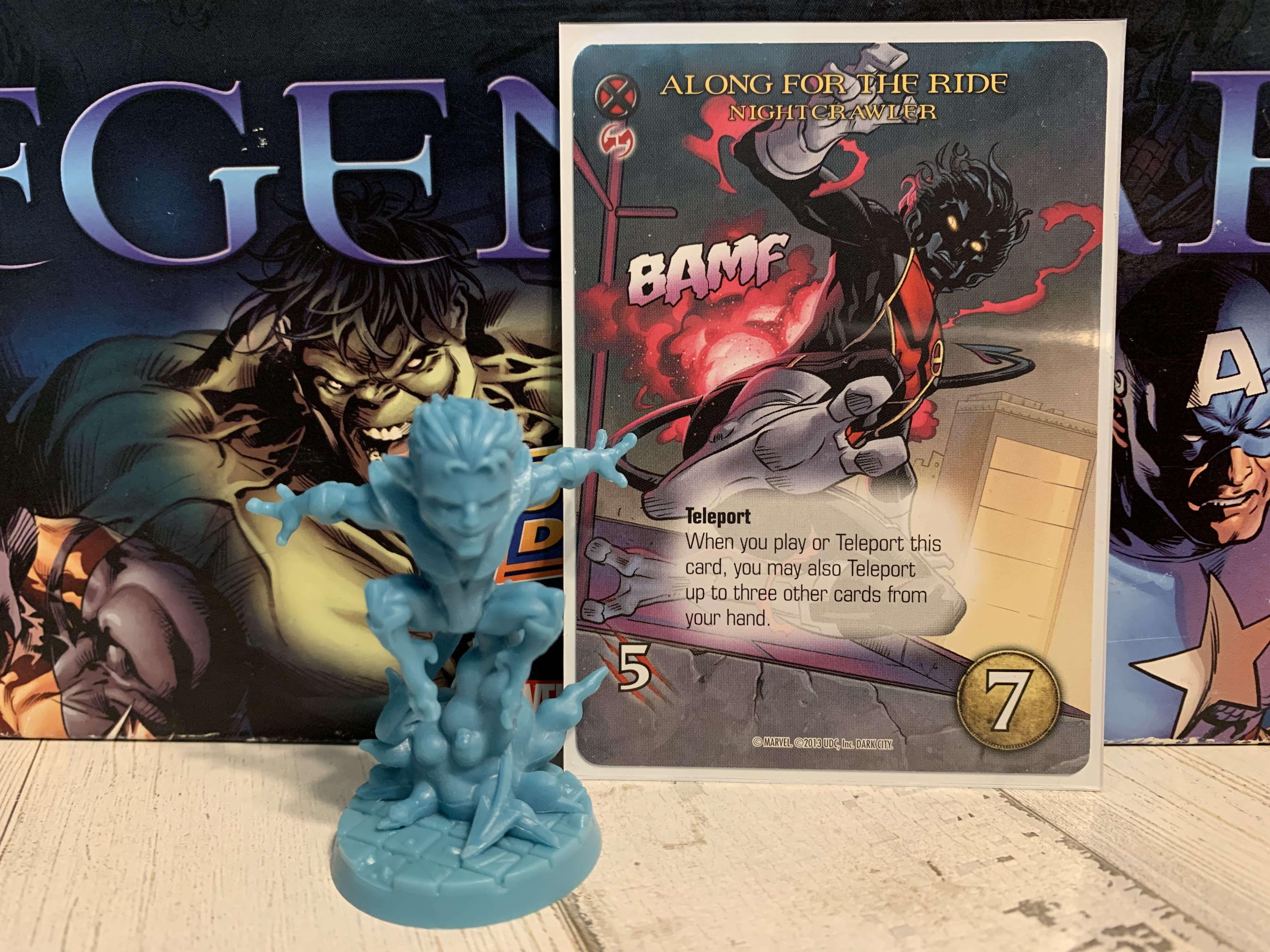 Selecting our heroes was a tougher task. While Legendary has a massive library of heroes, it does still have some gaps, so the trick became finding the overlap between Legendary and the newly announced Marvel United heroes. Representing the new base game are Loki, Lady Thor (Jane Foster), and Shuri. By the time we started putting together our challenge both Black Knight and Patriot had been announced as unlocked stretch goals. Spider-Man Noir will be part of the Spider-geddon expansion dropping this summer. While it might not be part of this campaign, it is technically part of the new Multiverse line for United. Finally, I added Nightcrawler because for anyone who joined in on Marvel United’s season two campaign, you’ll recognize the oh so important question of “Where’s Nightcrawler?”