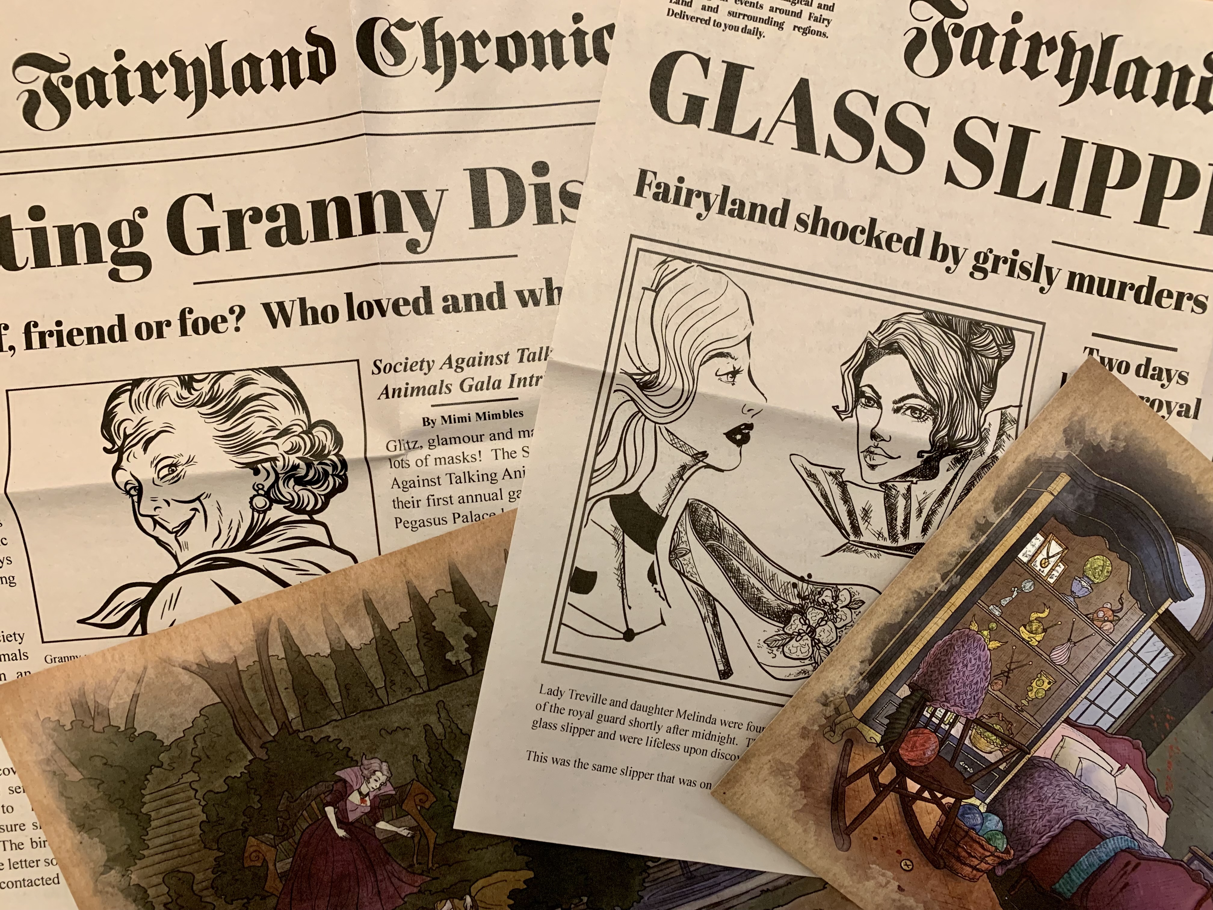 The Fairy Tale Files are marketed for ages 14+ and as a medium level difficulty. Each game is estimated to take around 1-2 hours, with the Cinderella case being advertised as the shortest (45-90 minutes). As a duo, we took around an hour for Who Framed Mr. Wolfe? And a little less than an hour for The Cinderella Murders.