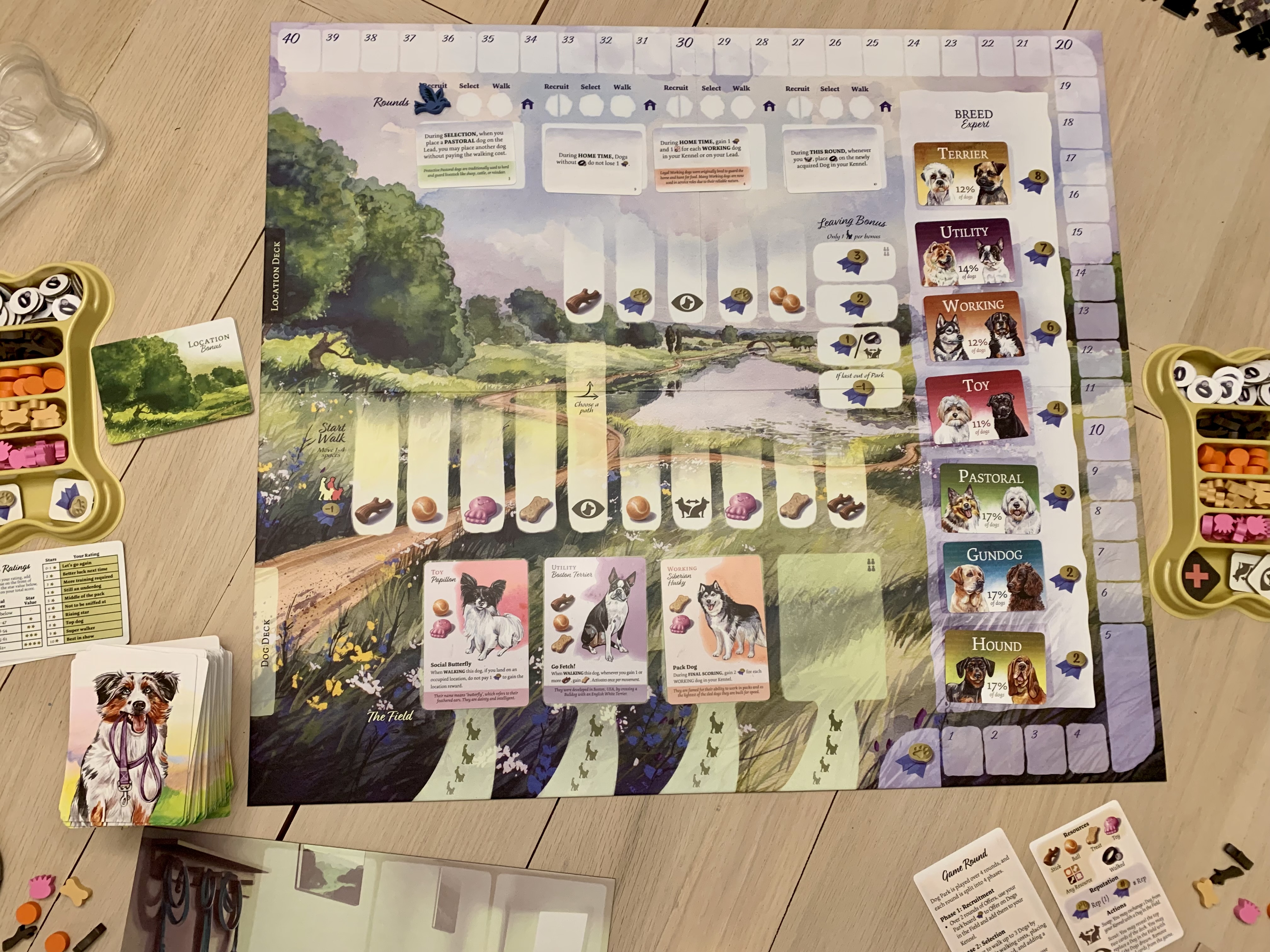 Finally, players will return home and collect two points for every dog they walked. Then, any dogs in their kennel without a walked-token will cost the player a point.