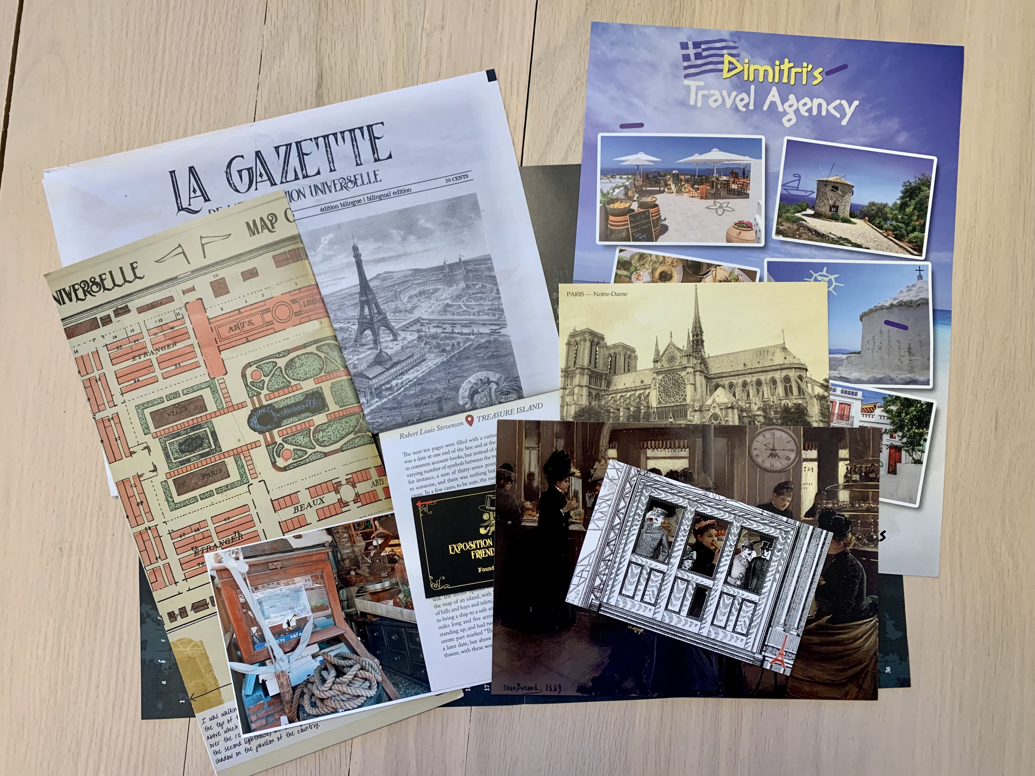 They will start with all papers and physical components, but some virtual ones will need to be discovered. All aspects in the game are presented in both English and French.