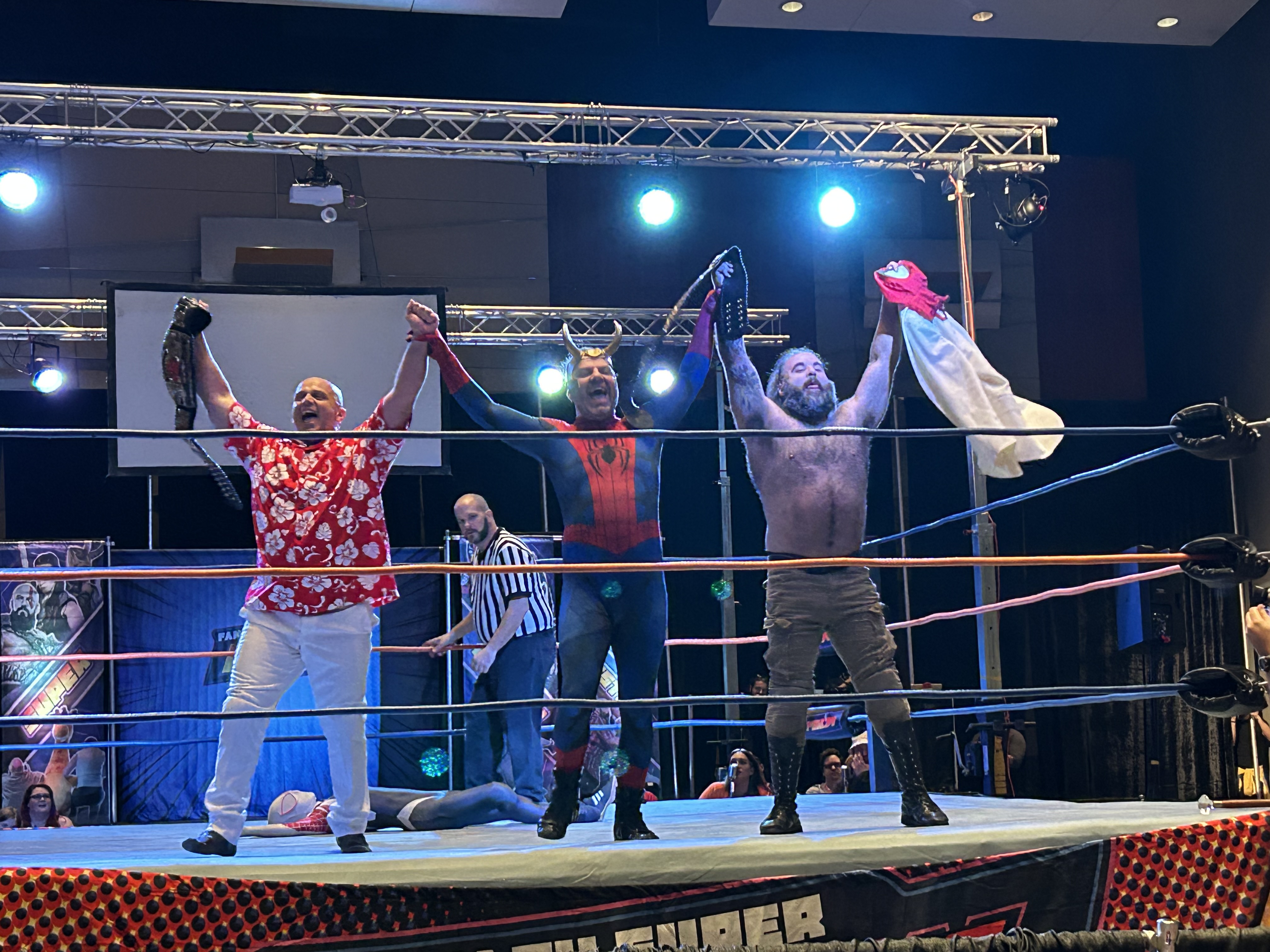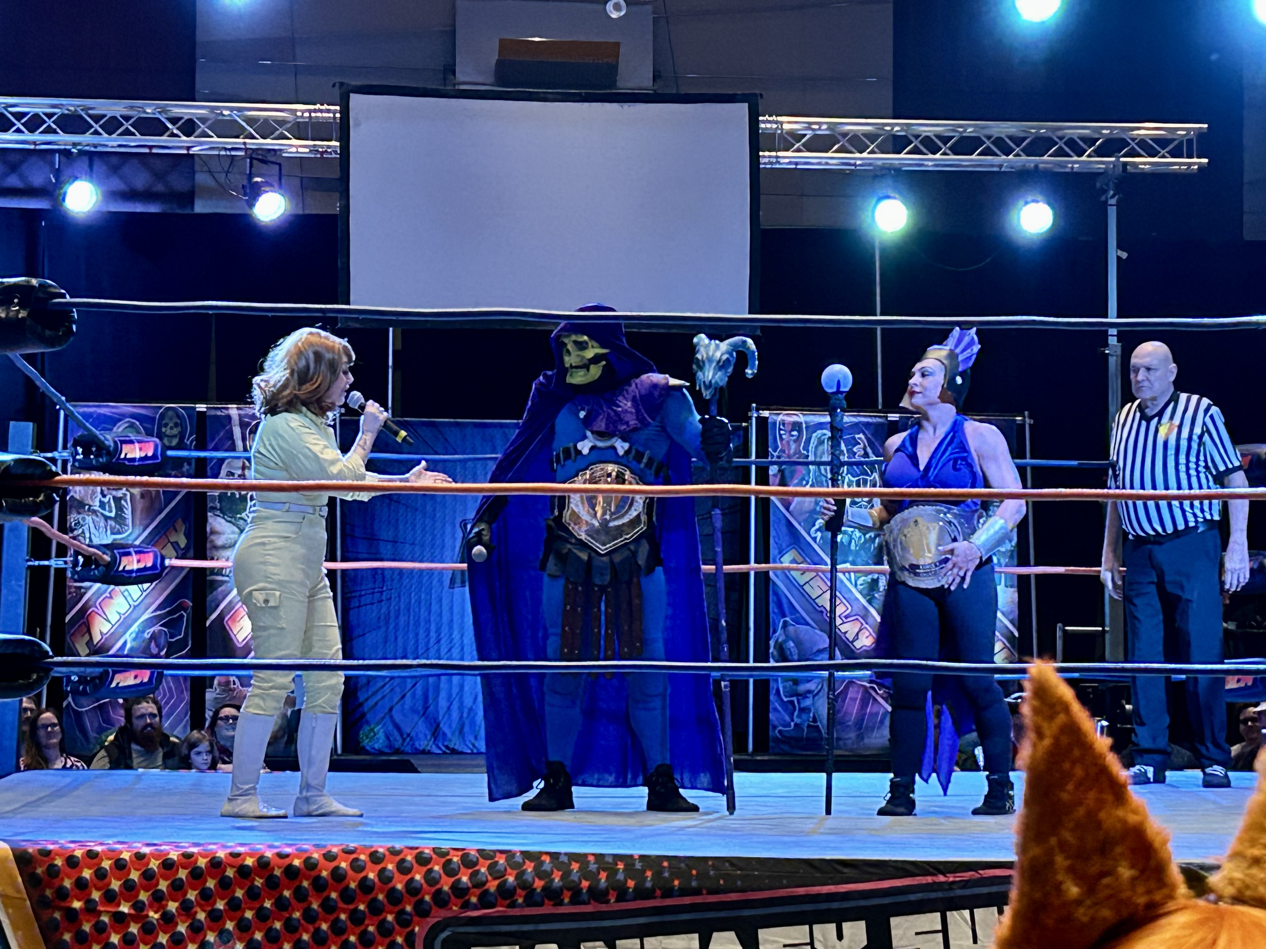 If you love cheesiness and silliness, this is a show worth checking out. FSCW ran a show each day of GalaxyCon. We got to check out the Friday and Saturday show. Characters featured included: Skeletor, Evil-Lyn, Shaggy, Team Rocket, Spider-Man and his enemies, The Teen Titans, Loki, Deadpool, Miss Trunchbull, Jinx, and Jay and Silent Bob. A big part of the fun is seeing who will come out next and how the different characters are going to interact. We also got to see the attempted wedding of Skeletor and Evil-Lyn and a Loki-variant screw Spider-Man and Spider-Gwen out of their tag titles.