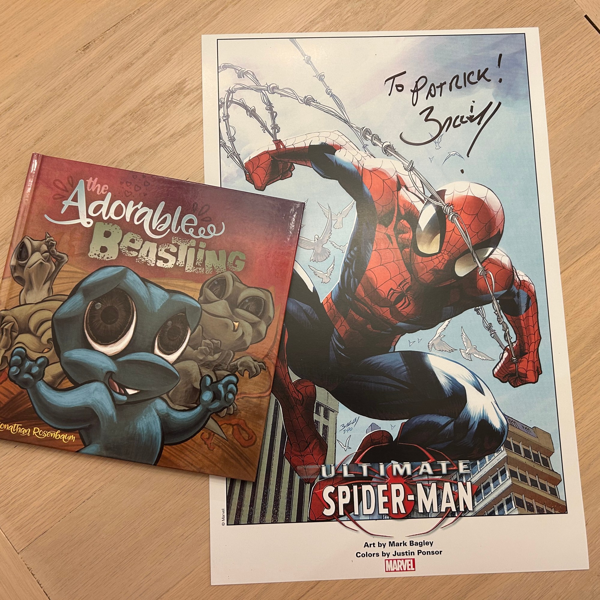 The show floor had so much to see and potentially buy. While we didn’t get as much this year, a few of our friends found a lot to dig into their wallets to buy. We ended up only purchasing a kids book (The Adorable Beastling by Jonathon Rosenbaum) and an autograph from Mark Bagley. We also got some free GalaxyCon D20s.