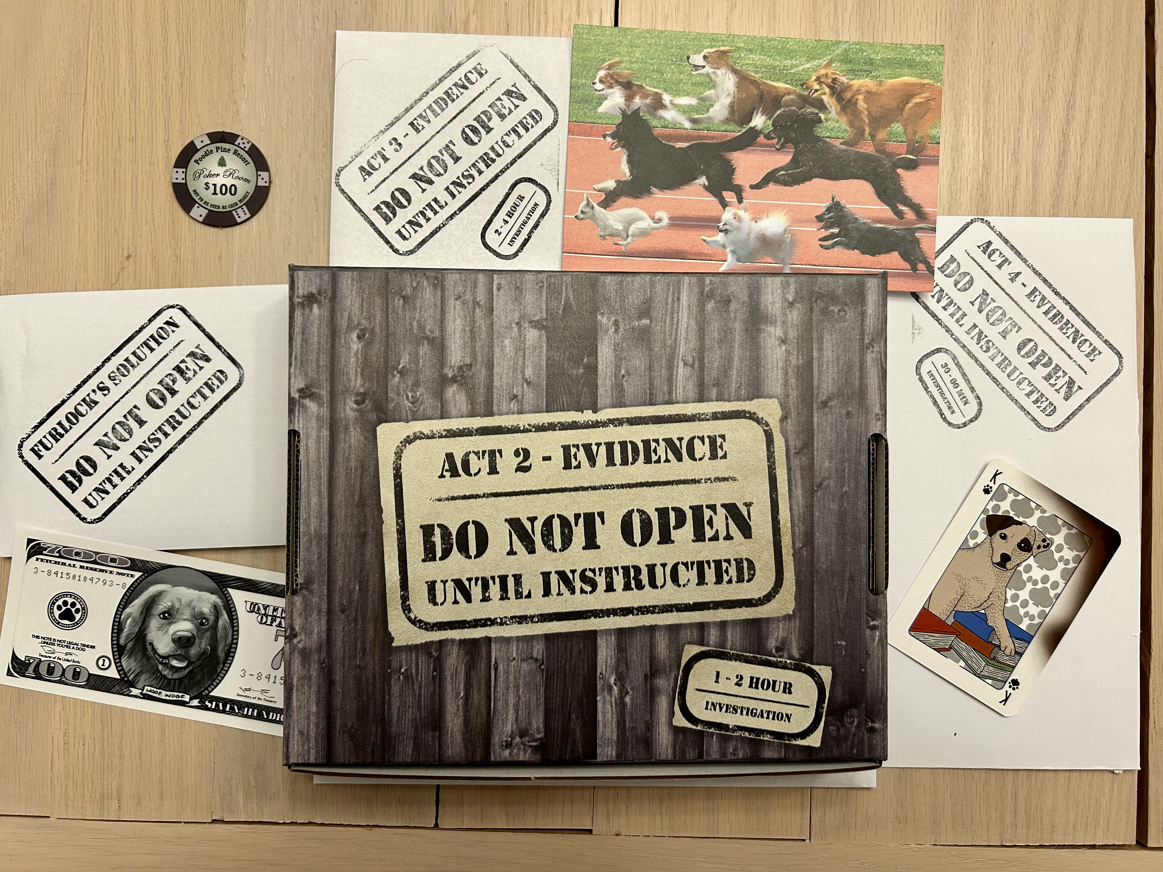 We played Ruff Bluff over two sittings and we really enjoyed ourselves throughout. The puzzles provided plenty of challenge, and we never hit any true frustration points. Several times we set aside one puzzle to work on another, but then we came back and found success. The box contains a lot to work with, which provides a great amount of content, but should also make this an easier game to play with several people.