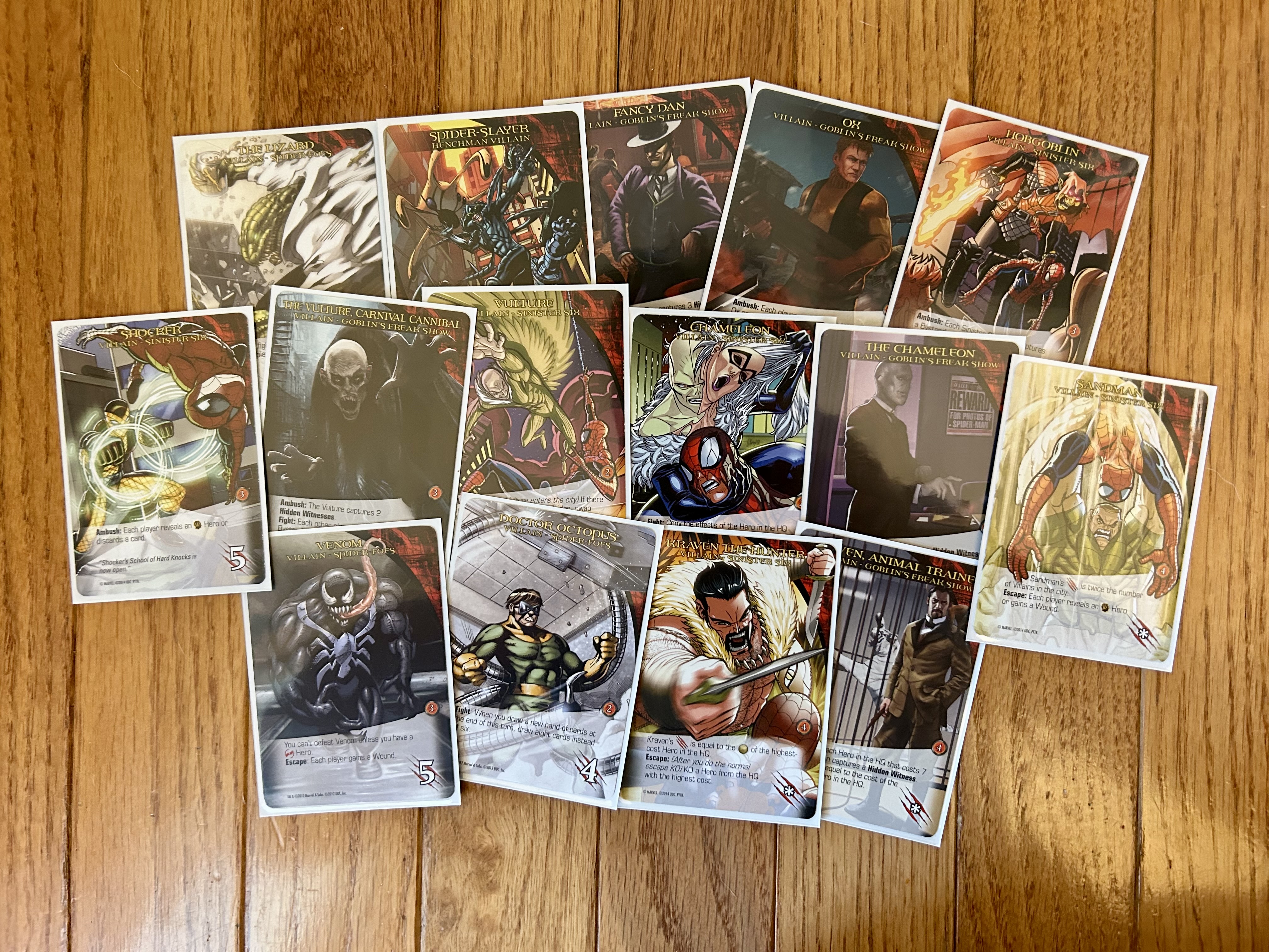 I rounded out the villain deck with a flood of Spider-Man villains. Unfortunately, this is where I made a bit of a mistake that I would do differently if I played this setup again. I upped the extra masterminds’ tactics from two to four to increase the game’s difficulty, since I knew the Spider-Friends would probably have good synergy. However, to continue tweaking the balance, I threw in an extra villain group. I hoped this would give us a few extra turns to deal with problems while also still giving us plenty of big foes to fight against. I would recommend simply running the suggested number of villain groups and still keeping the extra tactics. That would result in a pretty good difficulty balance.