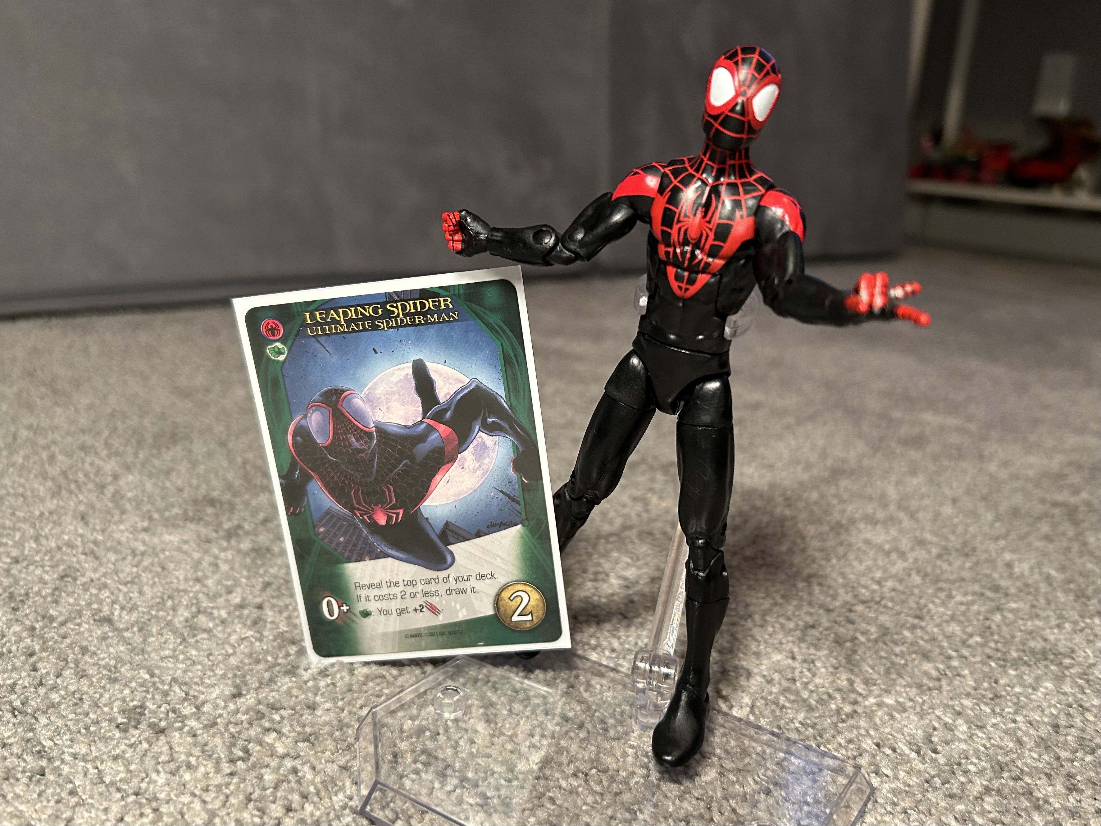Both our decks featured a mix of Spider-characters, but Confetti ended up leaning a bit more Gwen’s city-space specific bonuses (patoring) while Chaos leaned into Miles’ draw and attack build.
