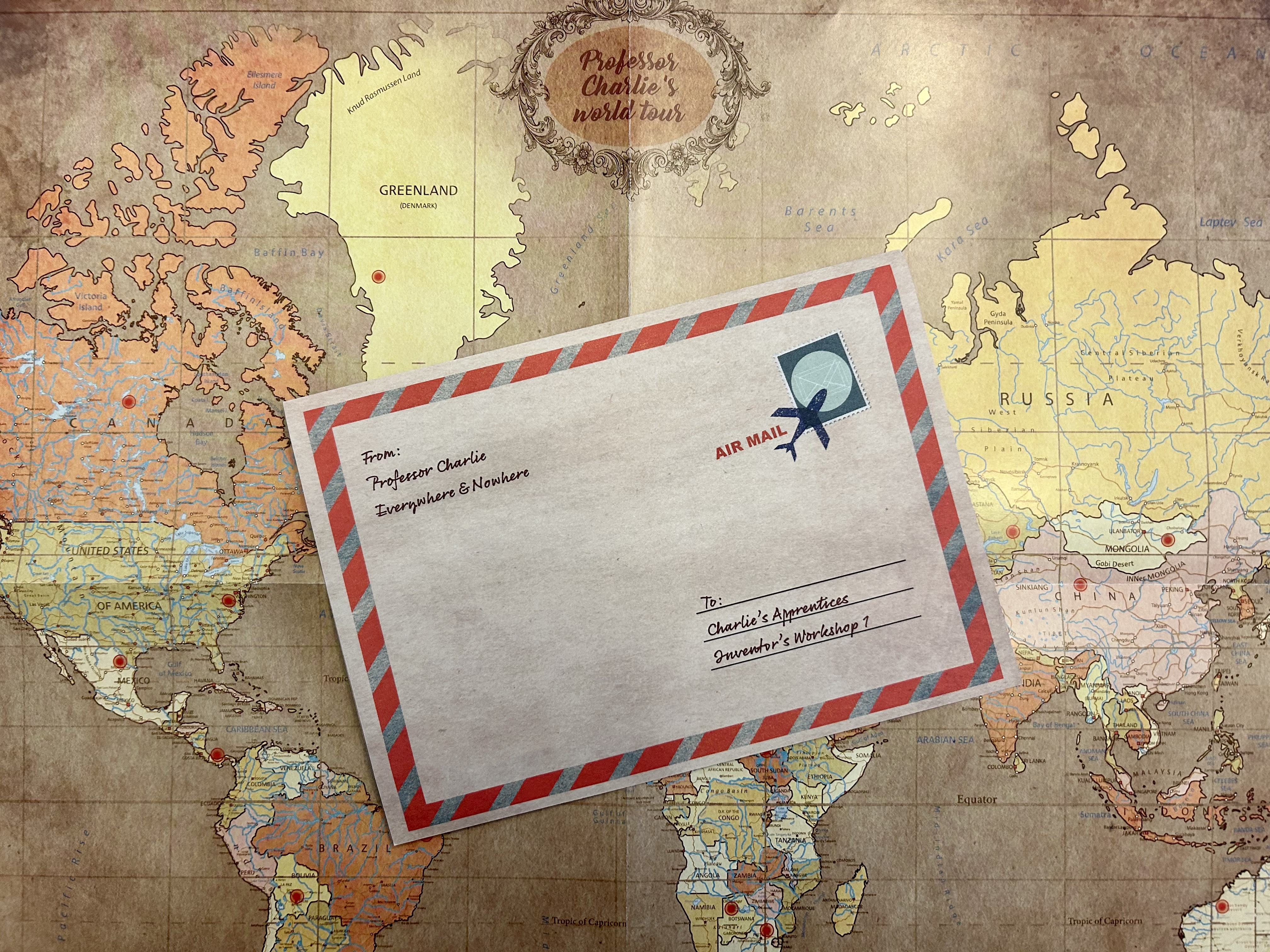 Professor Charlie’s World Tour is a chain of twenty-four puzzles presented through a series of letters. Professor Charlie has made an awesome discovery that he hopes to share with someone worthy of learning about it. As one of his assistants, you may be that person, but first you must use the letters he has sent to retrace the steps of his research and journey around the world. Prove yourself to see the world and to learn a secret that can change the world.