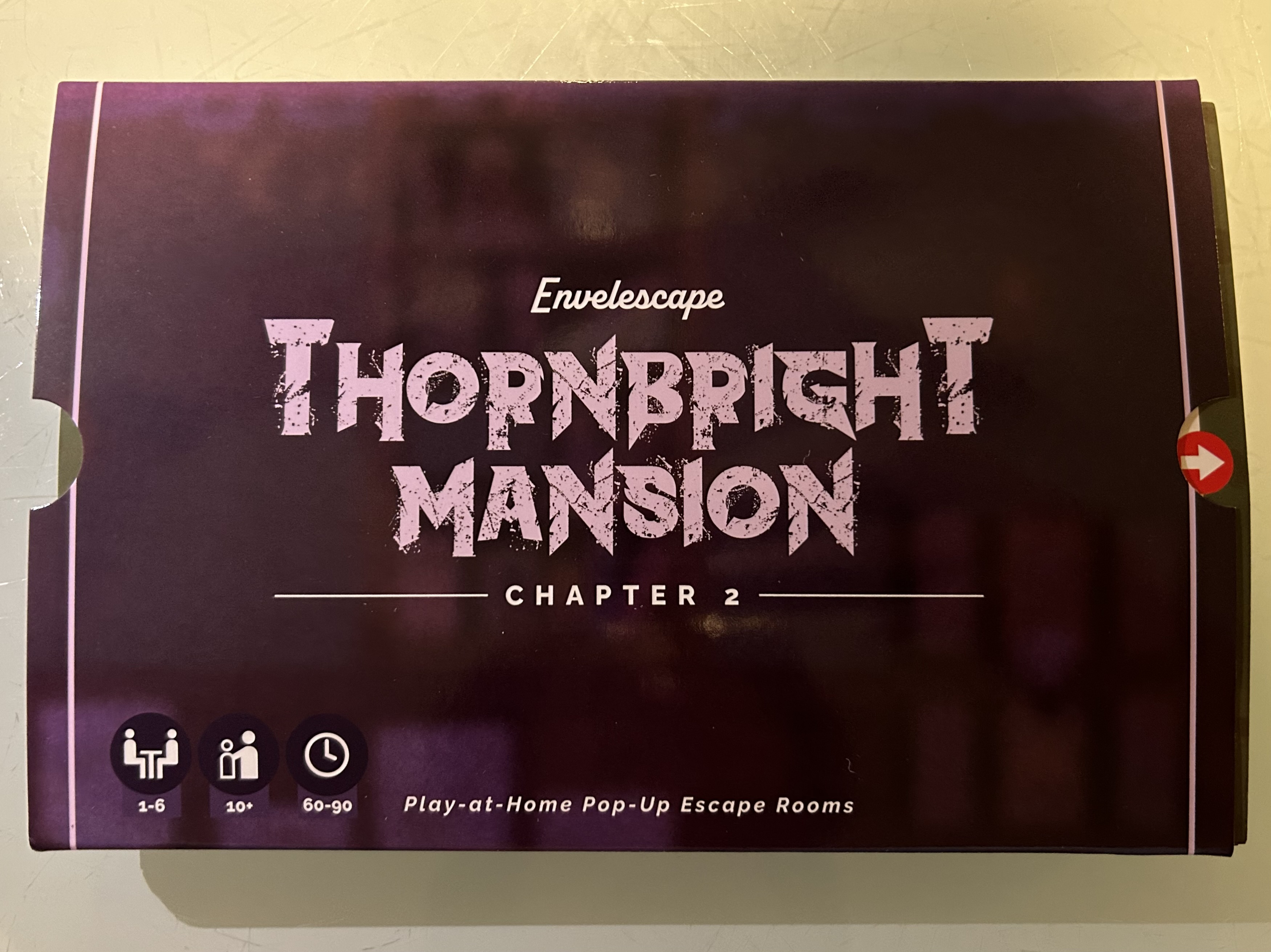 Thornbright Mansion is marketed as a beginner to intermediate challenge for 1-6 players, ages 10+. The game claims to take about 60 minutes, which is about how long it took us to complete the experience as a duo.