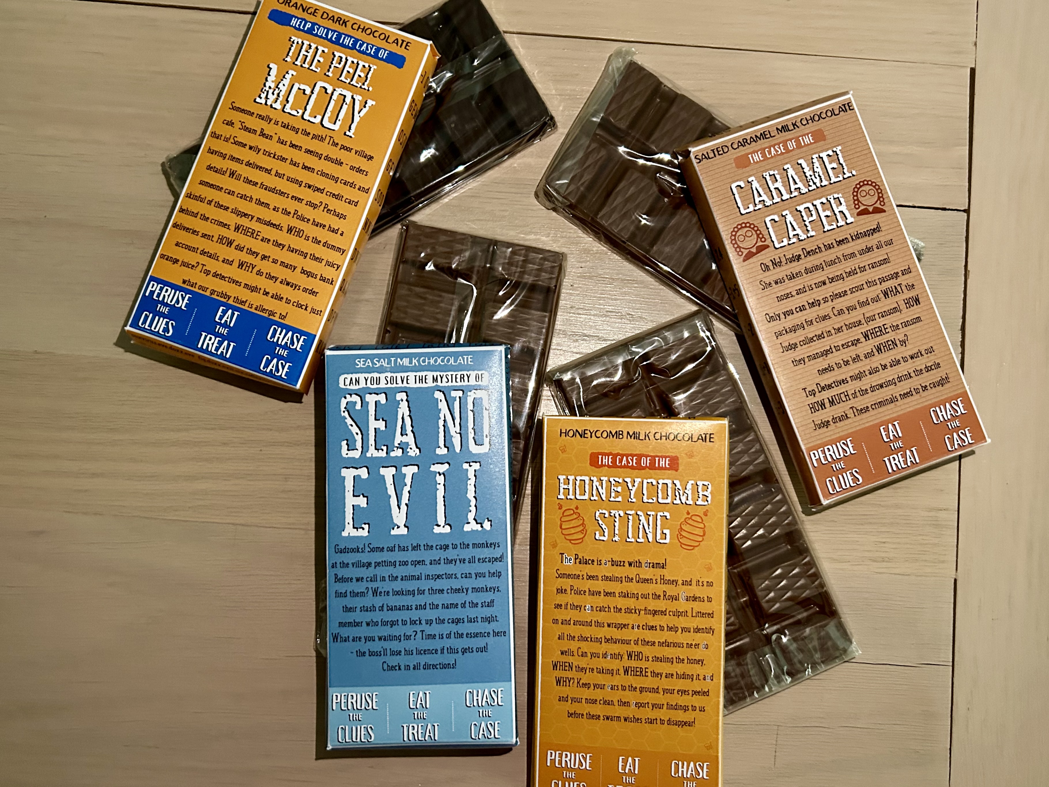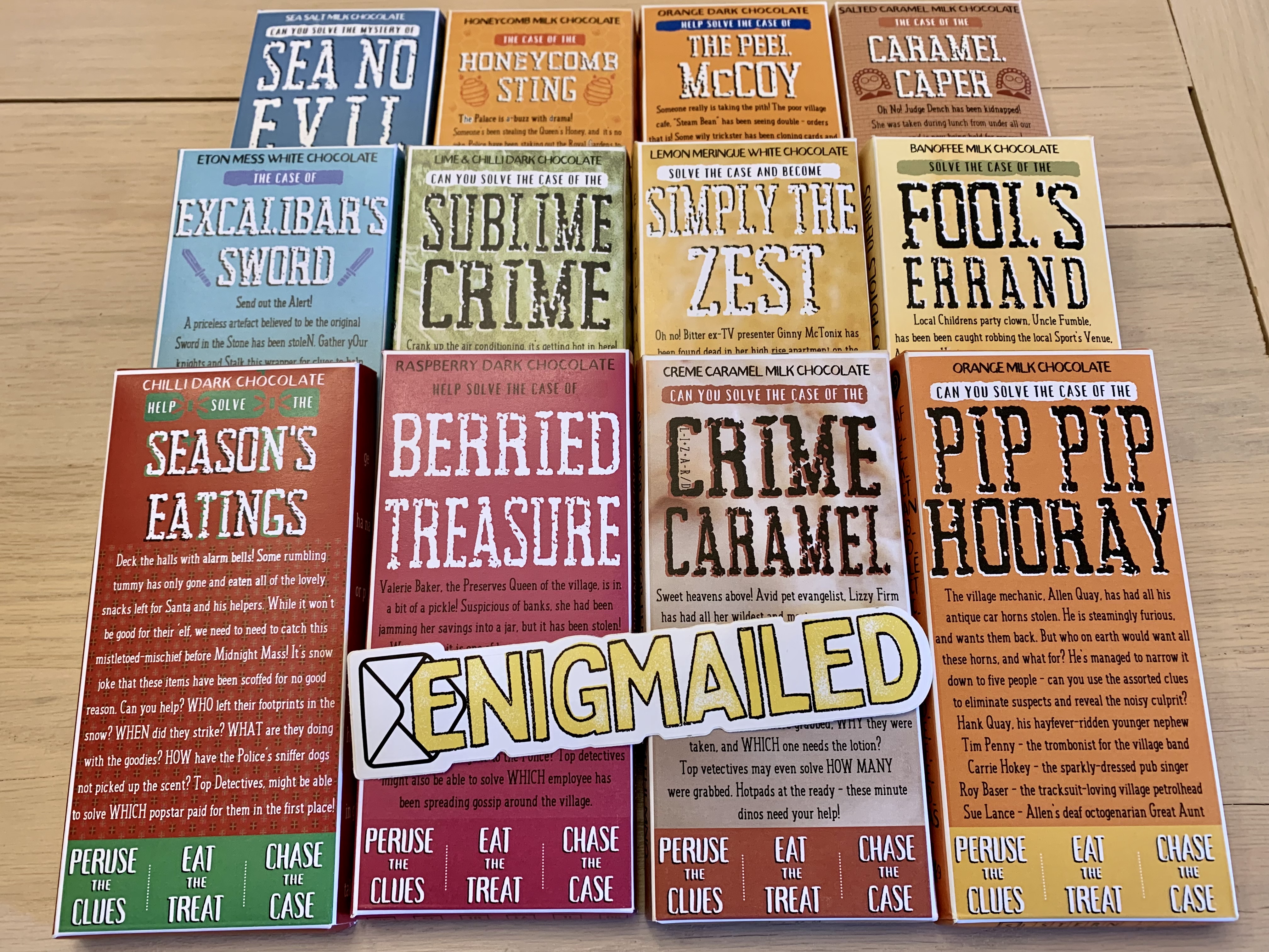 Enigmailed’s Chocolateral is a series of flavored Cornish chocolates that come with unique challenges. Each flavor of candy bar comes wrapped in packaging that includes a premise and a collection of puzzles to solve. Players will need to figure out the answers behind the mysteries, though they will have no trouble deducing what to do with the chocolate.
