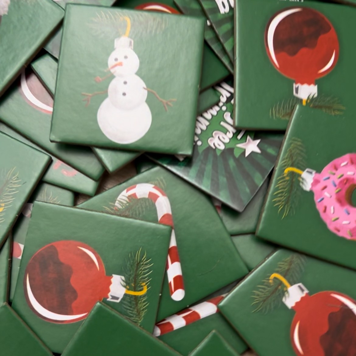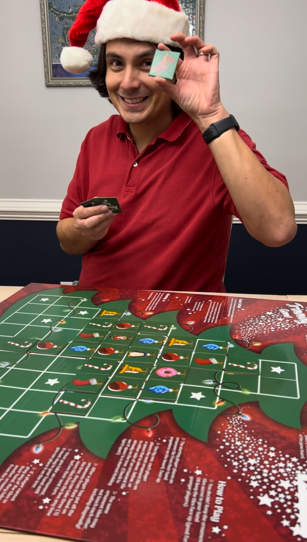 We showed the tiles to our two-year old, and while he’s still a little too young to play the game properly, he enjoyed the colorful Christmas theming of the game.