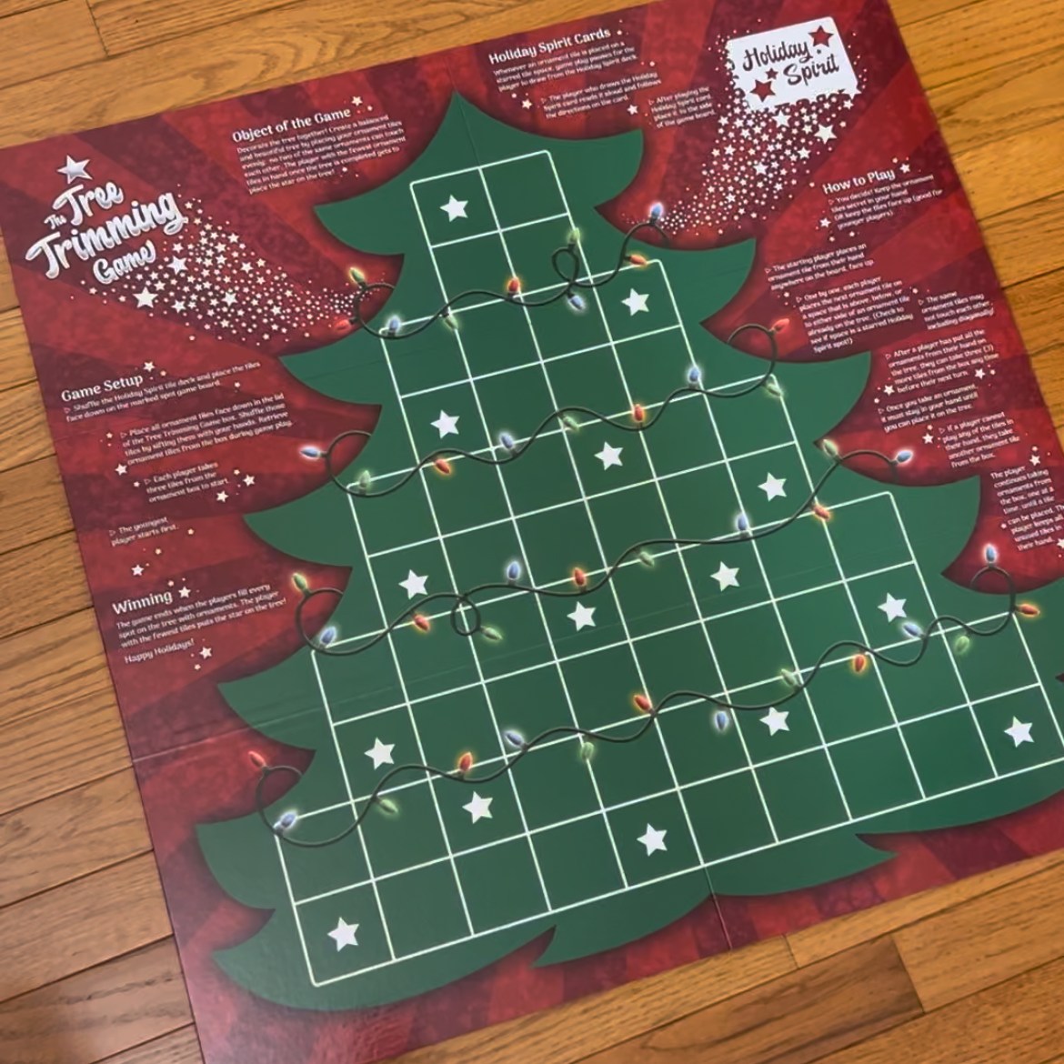 On the surface, The Tree Trimming Game is a very light strategy game that will have players competing to fill a tree and empty their hands of tiles. In reality, The Tree Trimming Game is aimed at bringing a group together for some fun, discussion, and bonding.