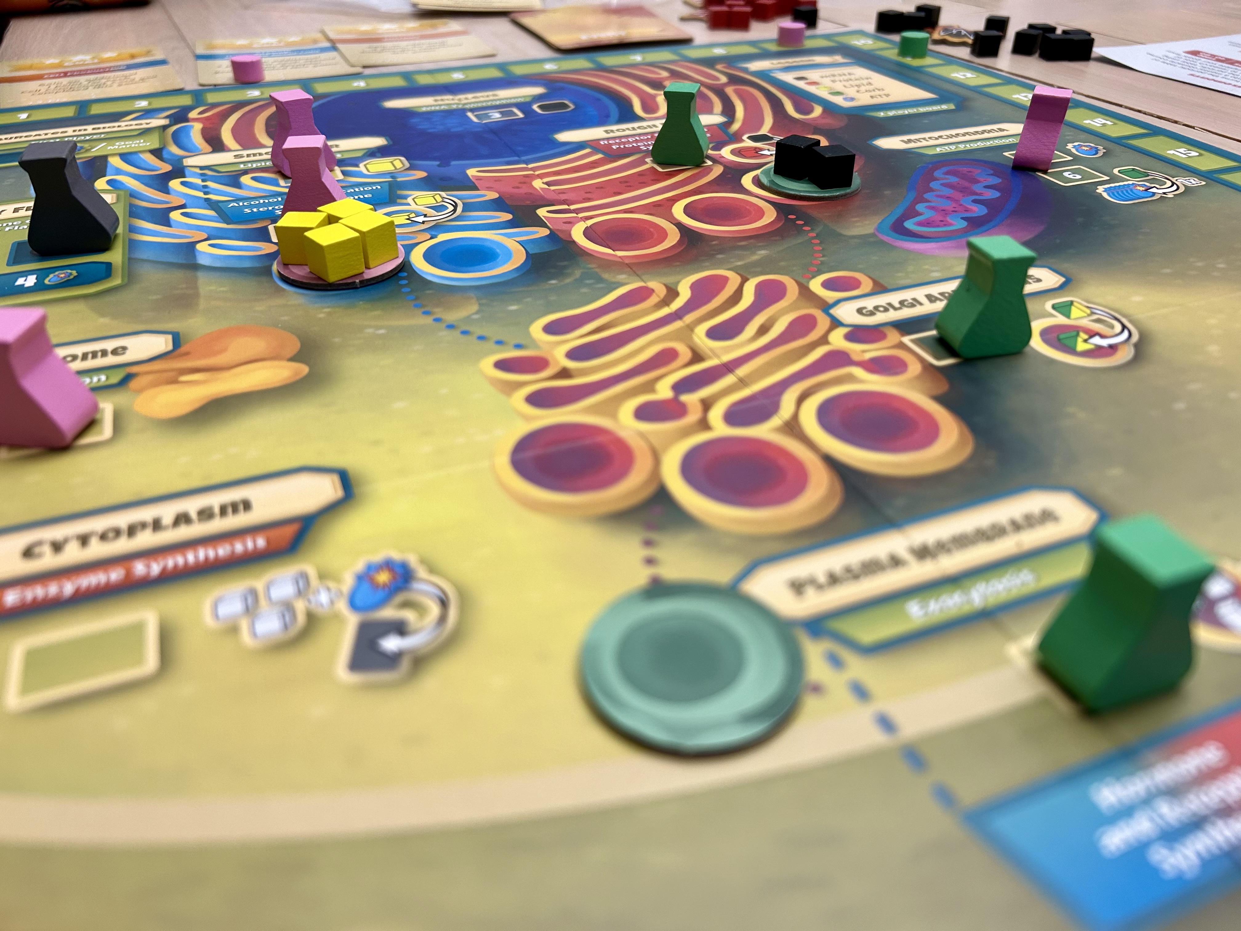 Cytosis is a science-based worker placement game. Players will compete to gain the most health points by completing cell component cards and helping a human cell complete its functions.