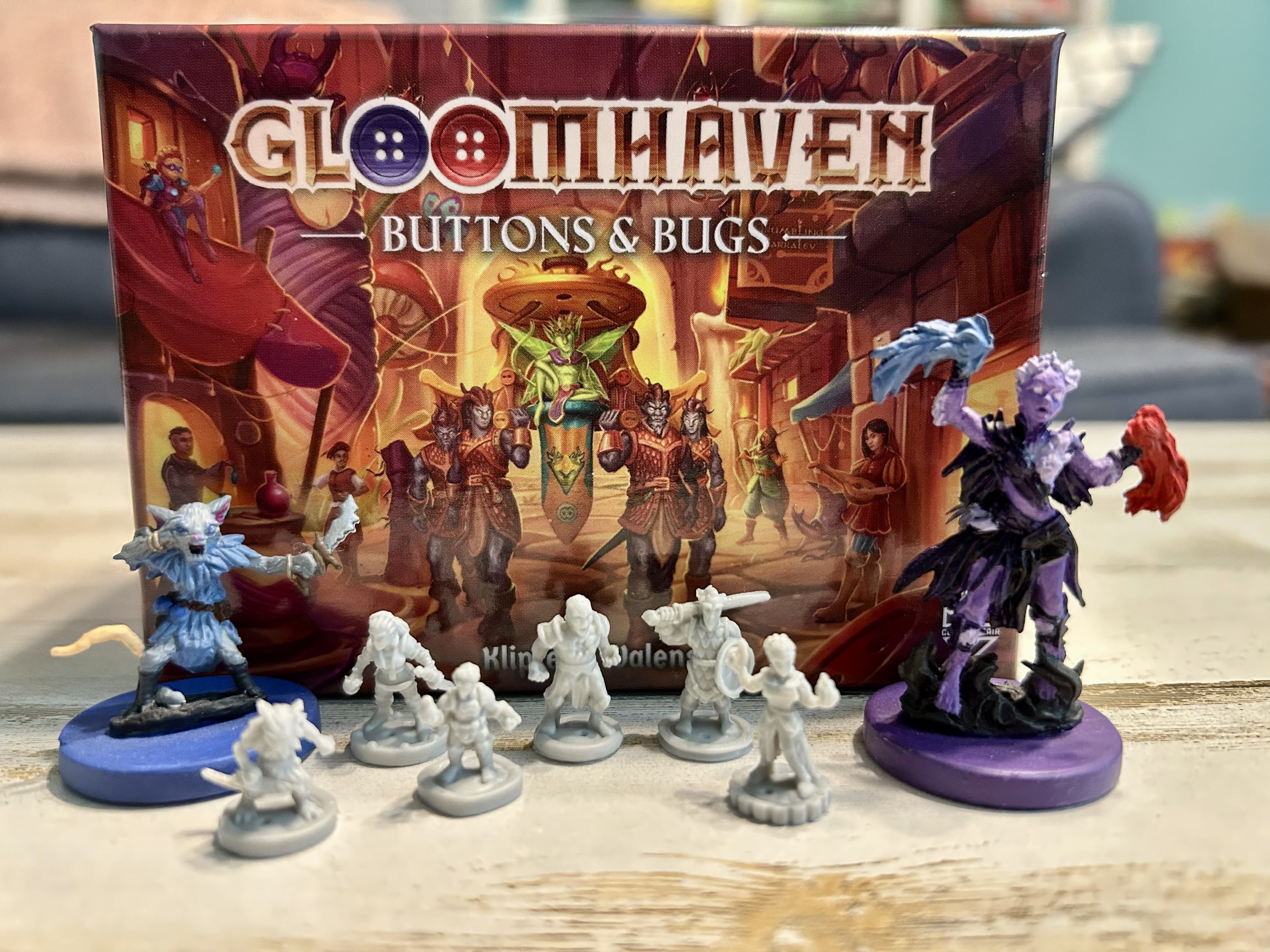 Buttons and Bugs is as compact as Gloomhaven can be without losing any of the magic of its scenarios. It even has a handful of characters to play as, which each come with their own combat cards and mini miniature.