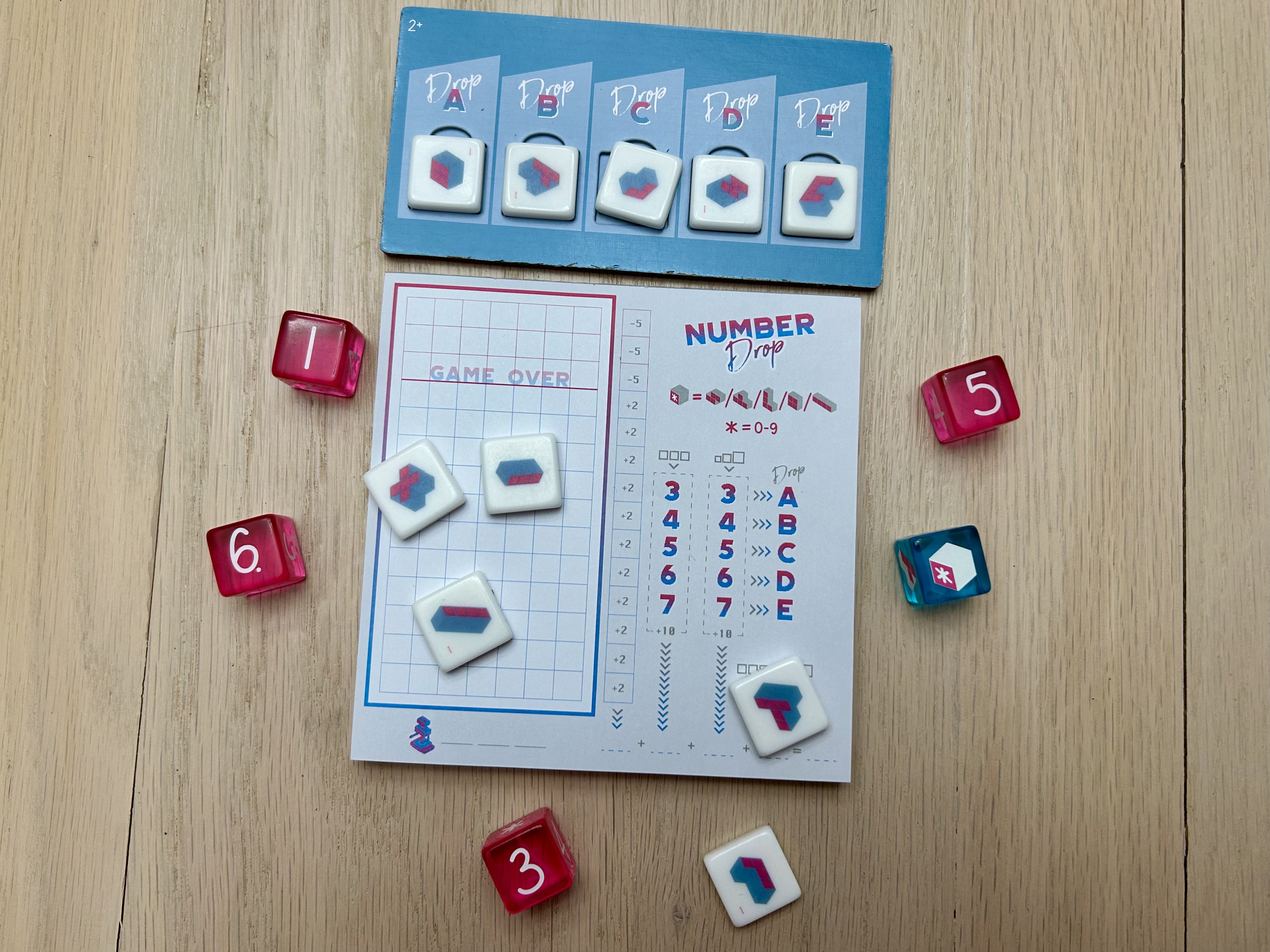 Once everyone has the rules down, Number Drop is a quick and addictive game. It captures the classic tetris feel while bringing its own identity, perfect for fans of roll and writes and spatial focused games.