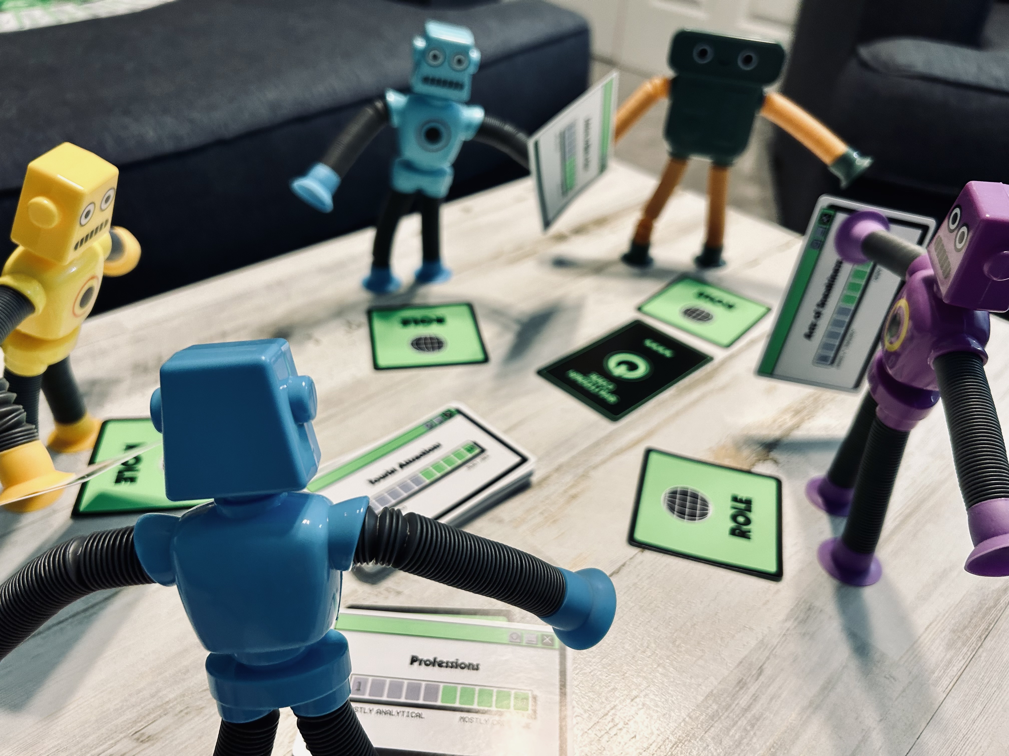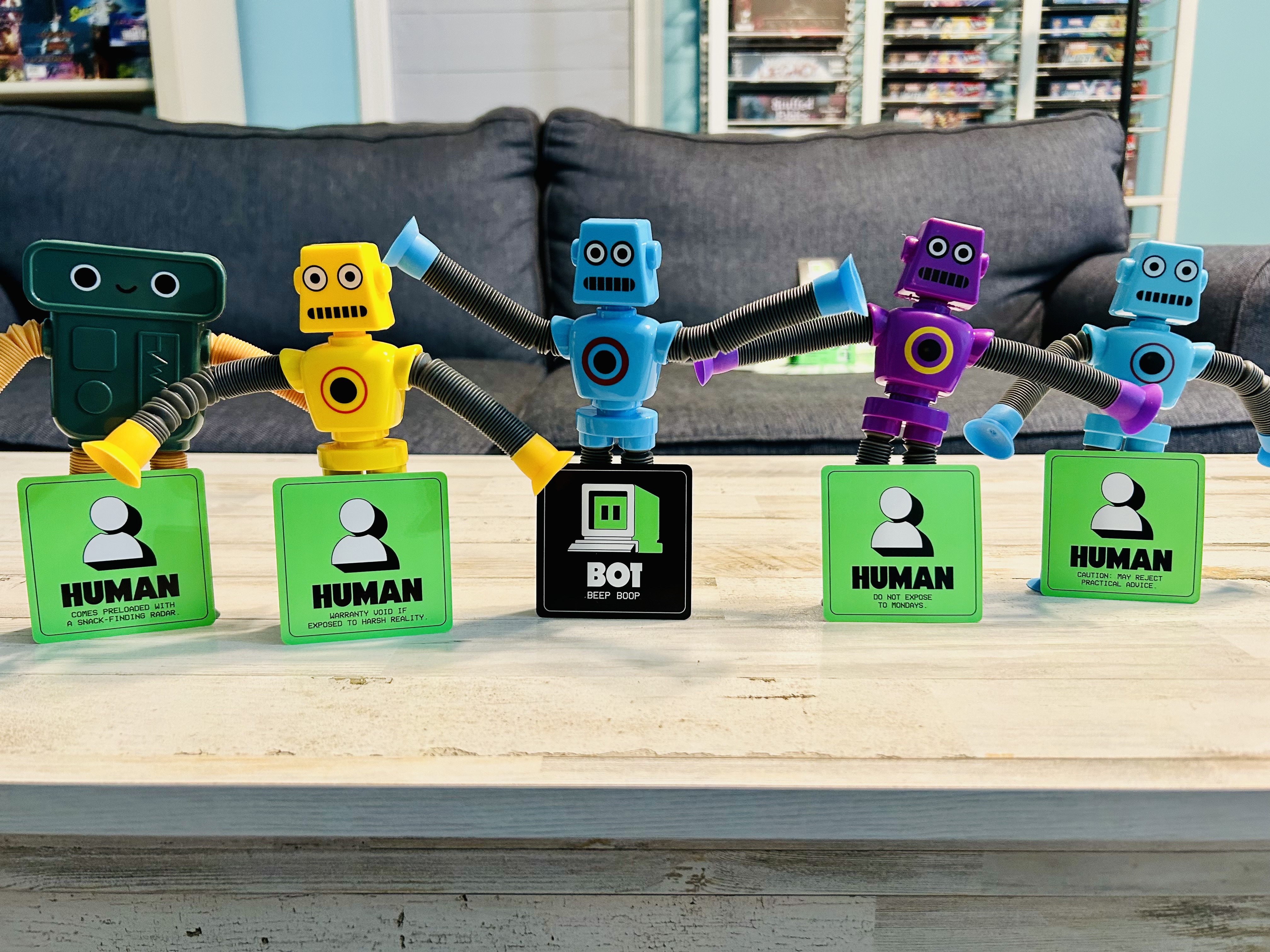 We definitely recommend throwing in the second robot if playing with a larger group. This helps create a little more difficulty for the guesser. This is good because the role of the robot is definitely harder than that of the humans. The robot has to seed misinformation without being obvious, which is a very fine line.