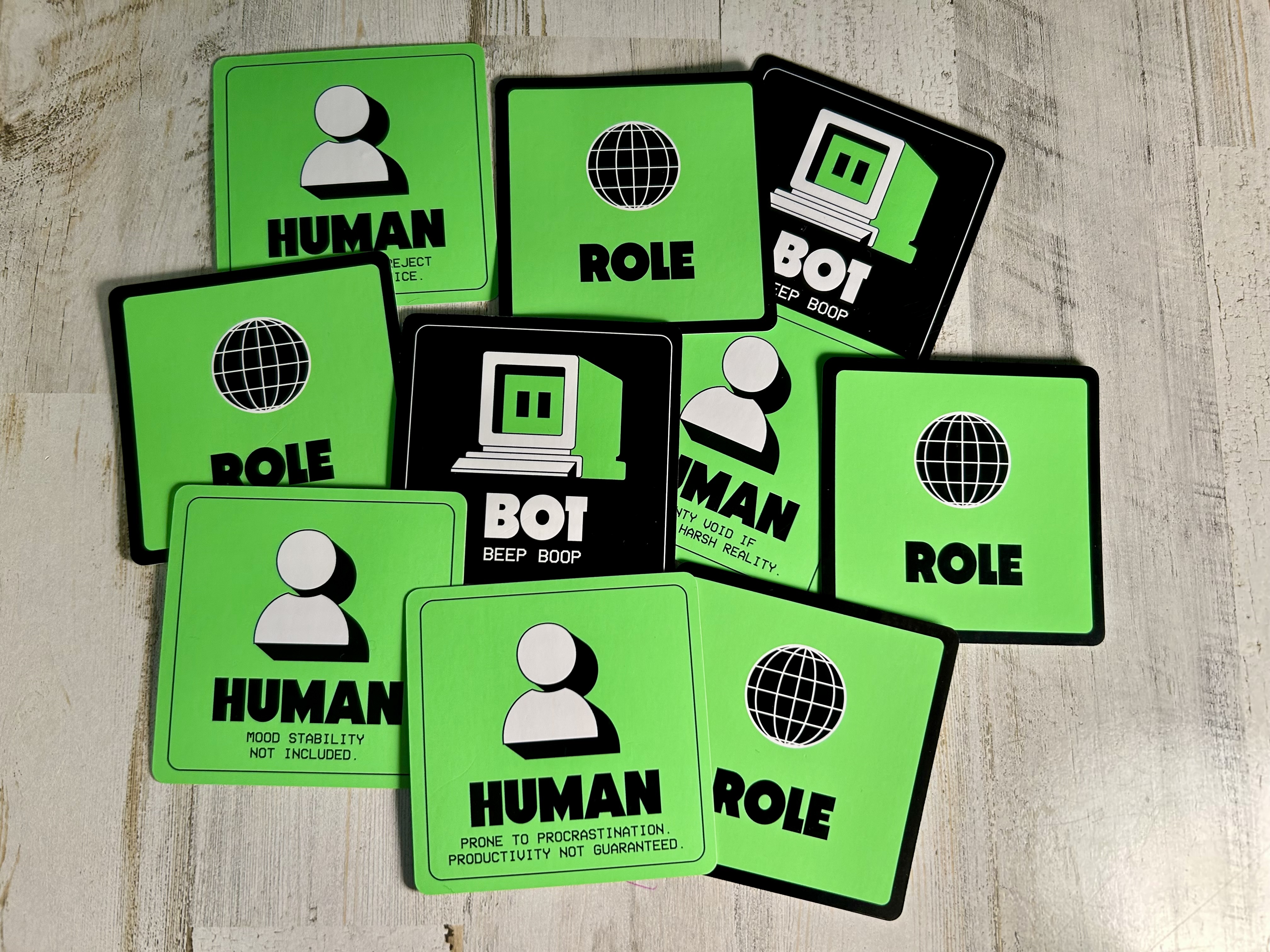 Bot or Not is a quick game to teach and start playing immediately. It’s also a fast playthrough, so groups should be able to knock out many rounds in a single play session.