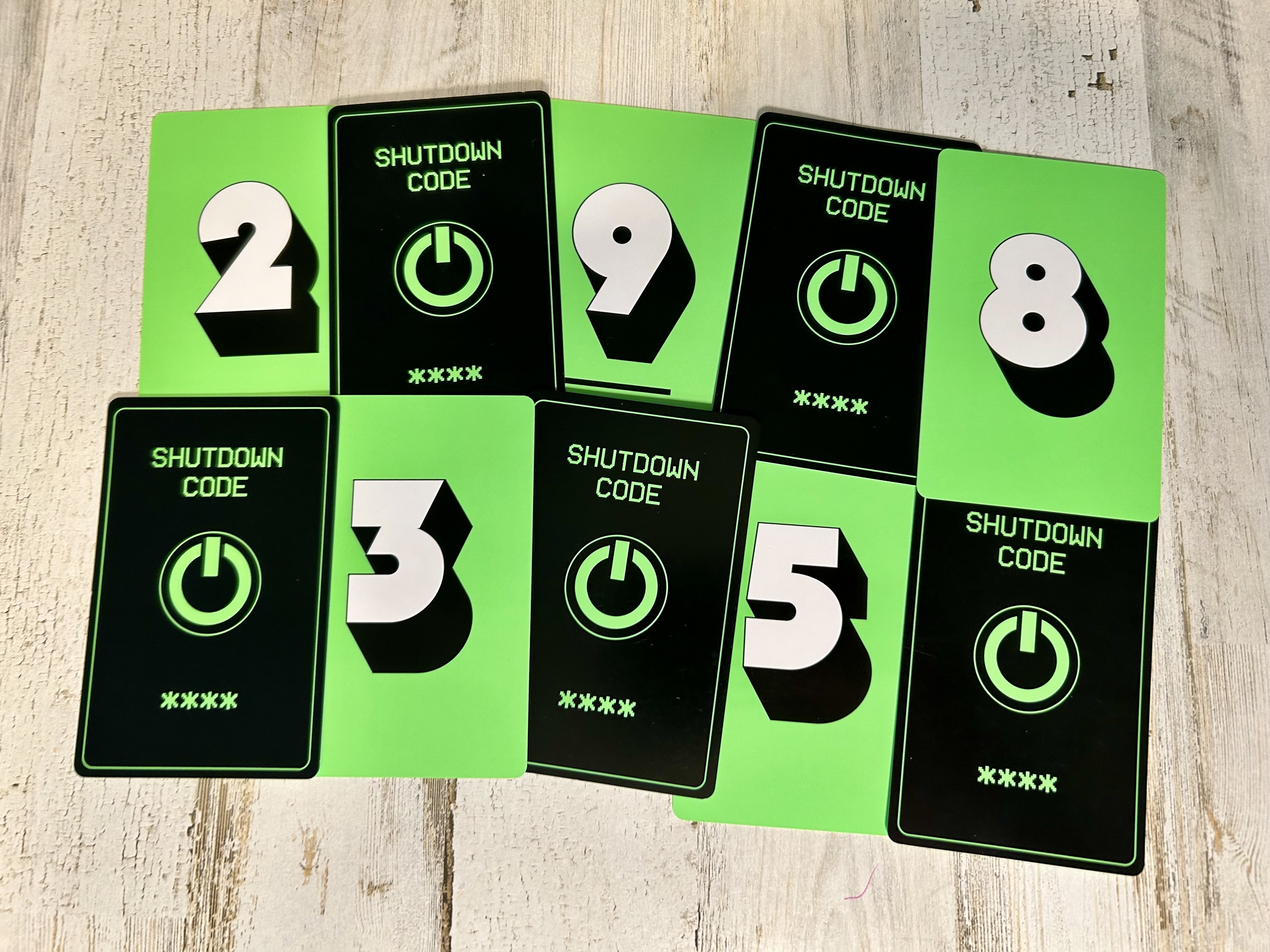 Finally, the guesser will reveal a shutdown code card to all players, without seeing it themselves. This is the number that human players will be trying to get the guesser to choose.