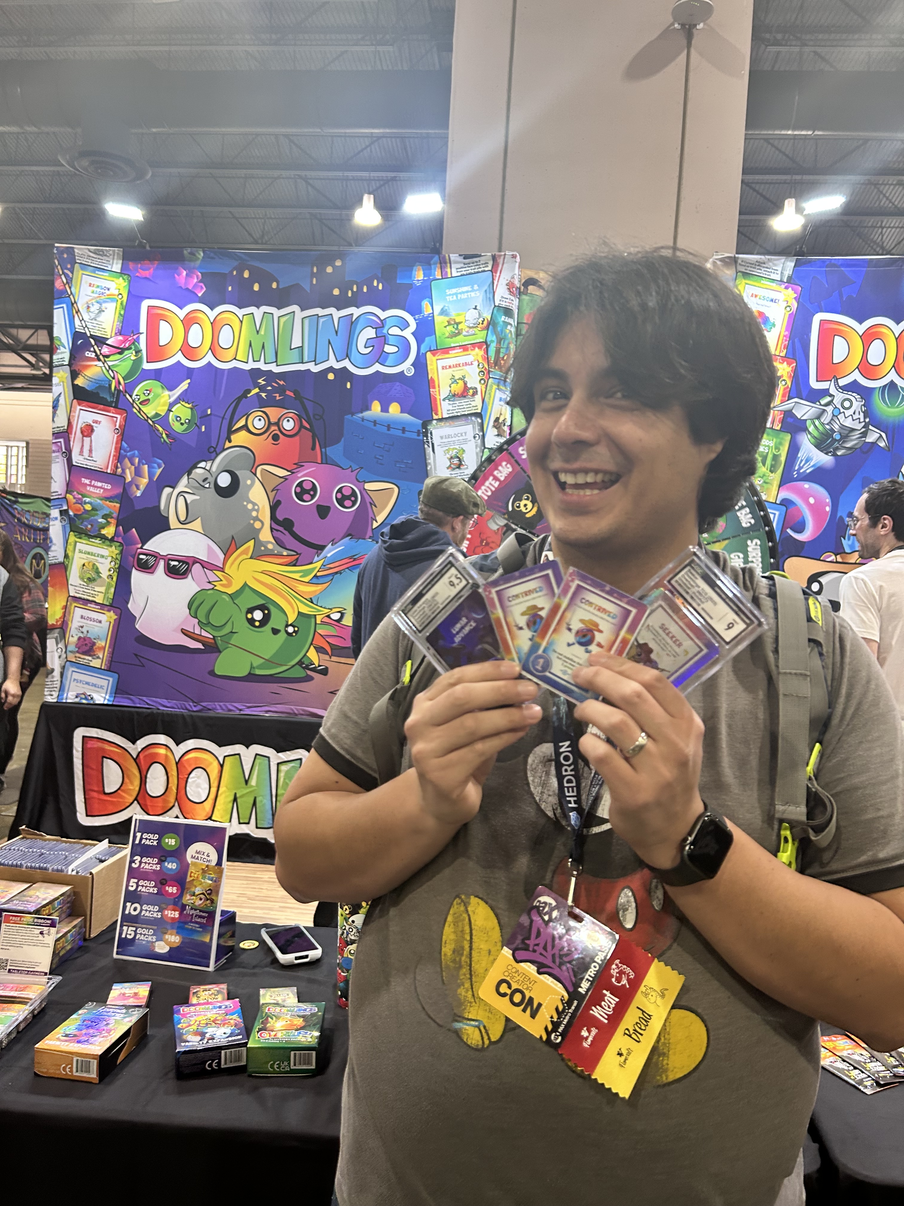 For example, our friends at the Doomlings booth had a giant prize wheel that attendees could spin after a purchase. Some times like Catan and Flamecraft gave out badge ribbons. I loved getting to choose my favorite dragon types and get corresponding ribbons.